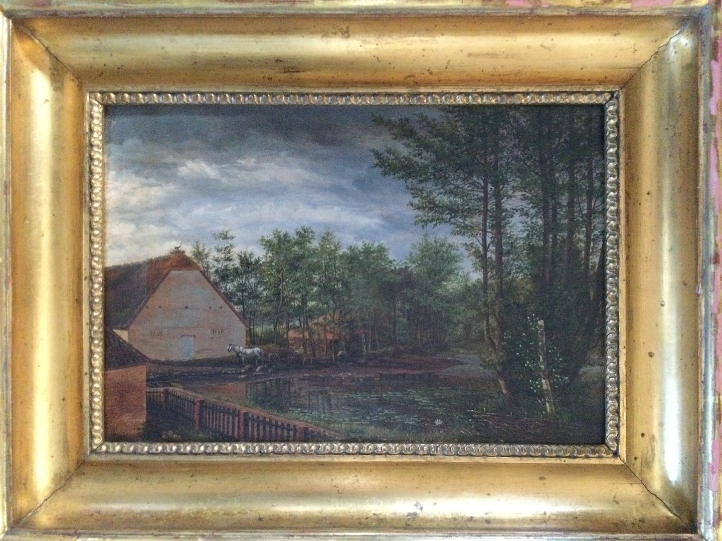 Maleri af Elisabeth Sofie Seidelin 1872 - - Landskab med ejendom og heste i fold.