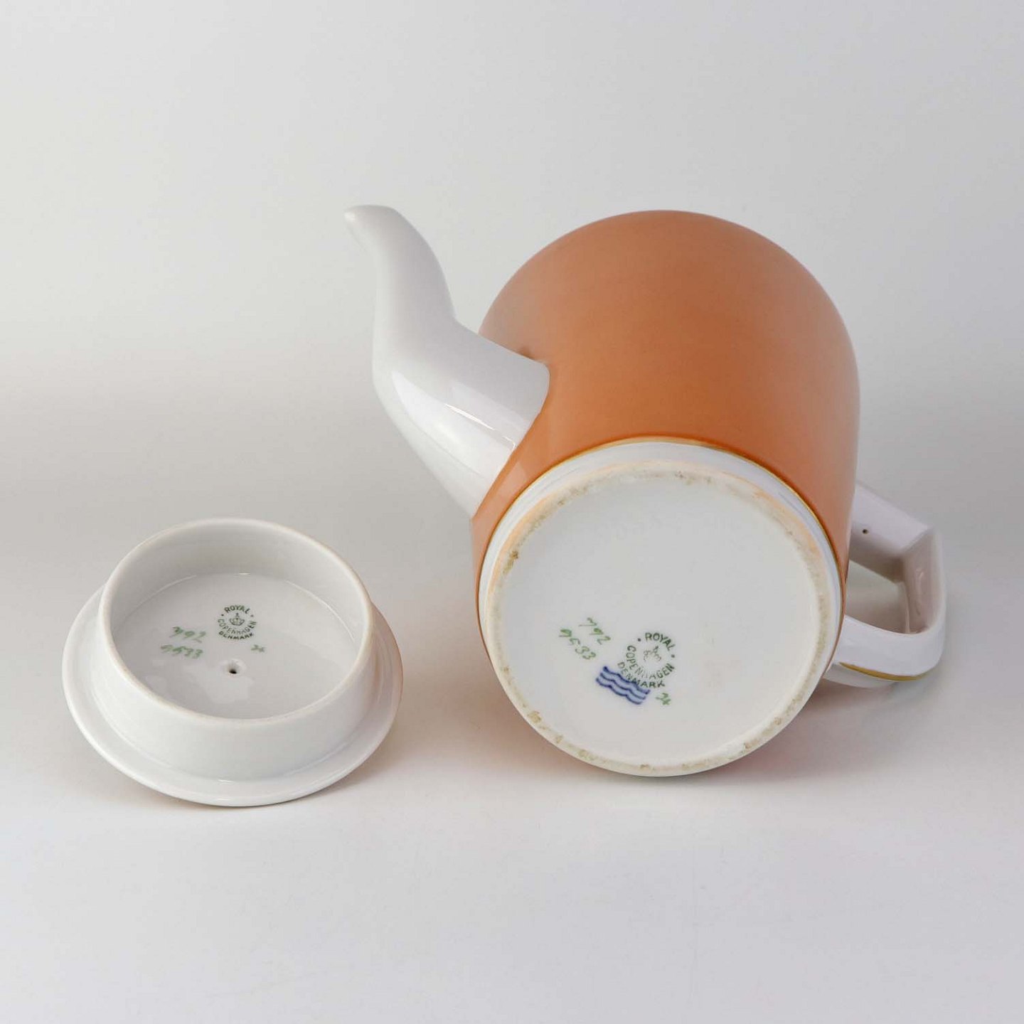 Kande med låg til kaffe i kongelig porcelæn fra stellet Jægersborg. Nr. 792/9533