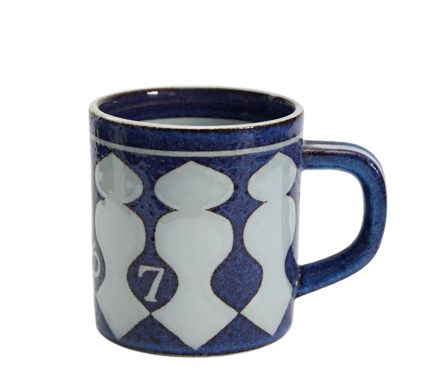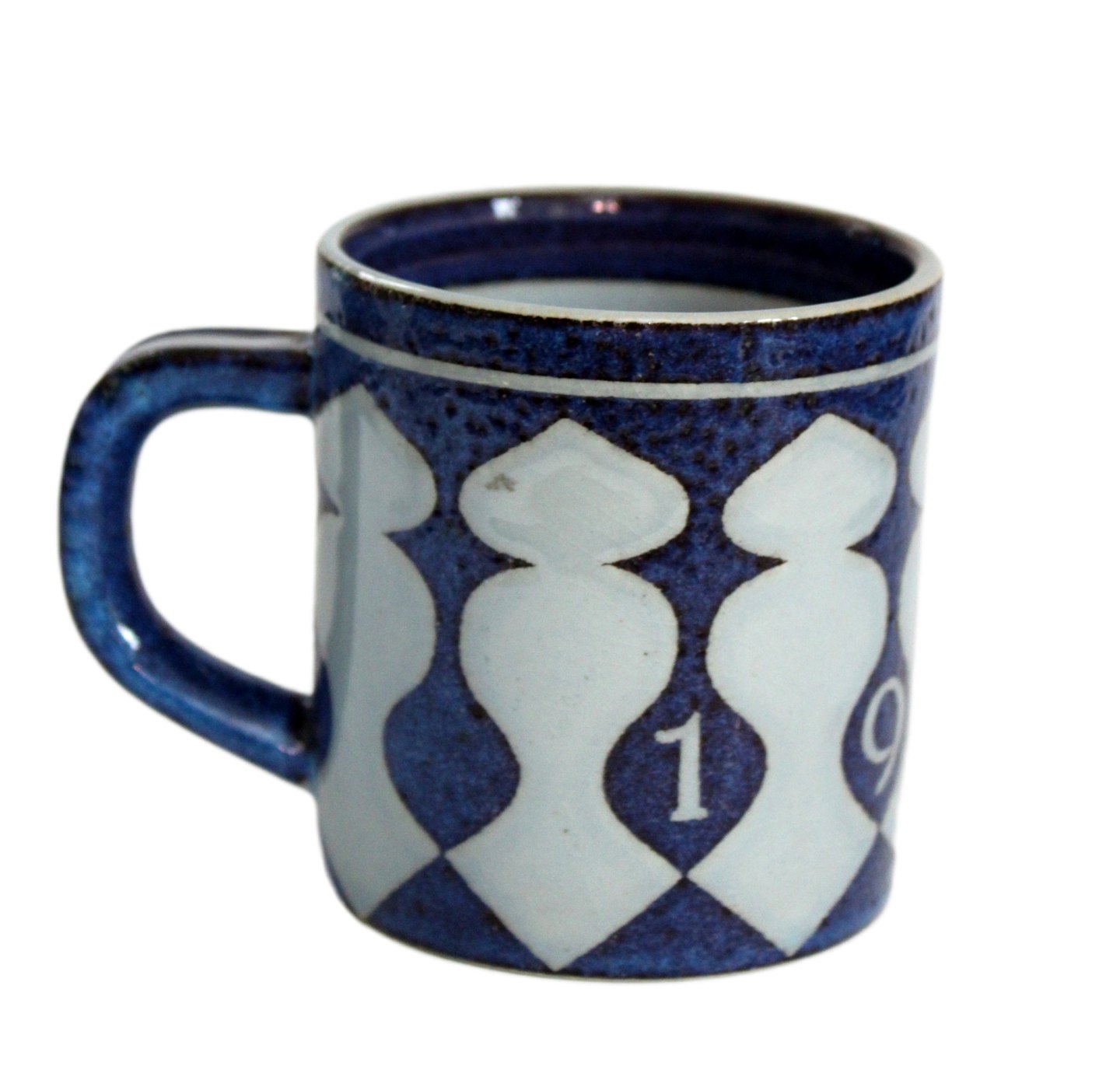 Aluminia, Lille årskrus i kunstfajance. Designer Nils Thorson. Dette er det første årskrus. Nr. 3495. Årskrus er produceret fra perioden 1967 til 2014, fra 1968 er det Royal Copenhagen. Højde 7,5 cm. Diameter 6,8 cm. Lettere overfladekrakelering. Pris: 700 kr. stk. Lager: 1