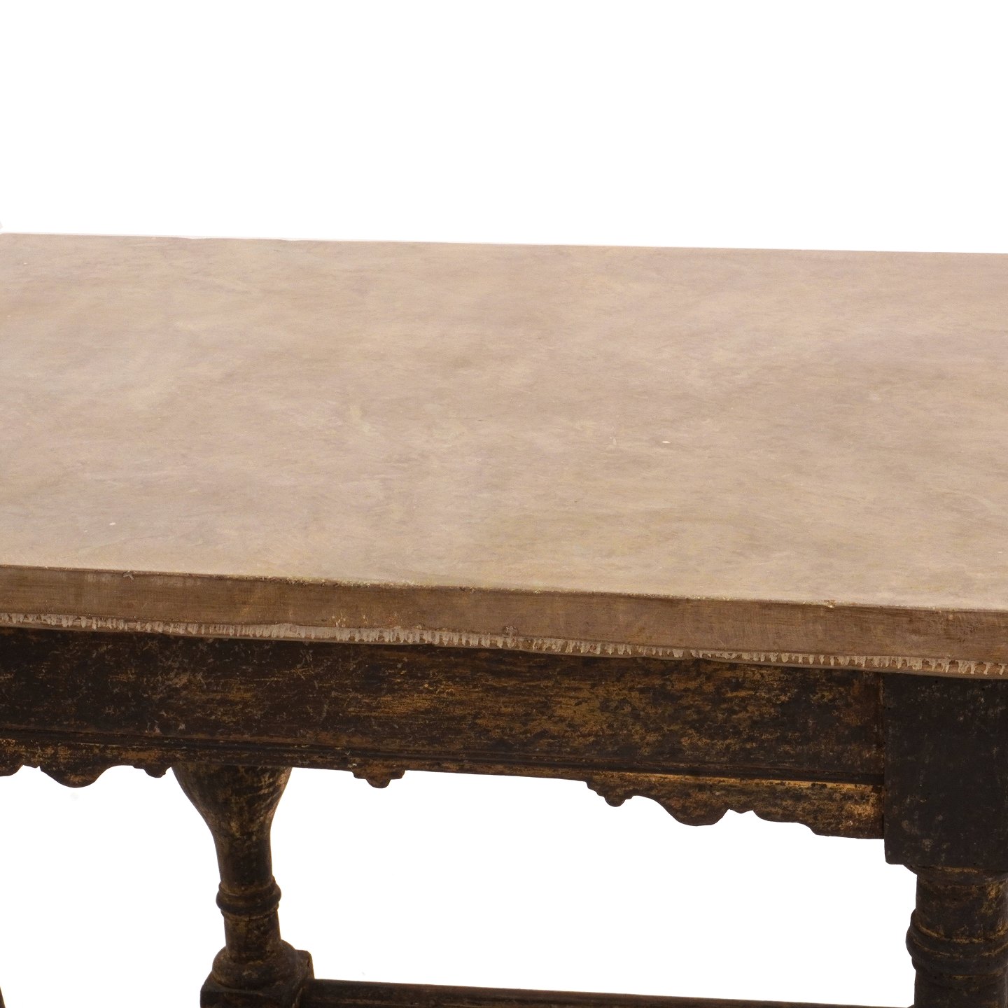 Sort dekoreret barokt bord med grålig stenplade