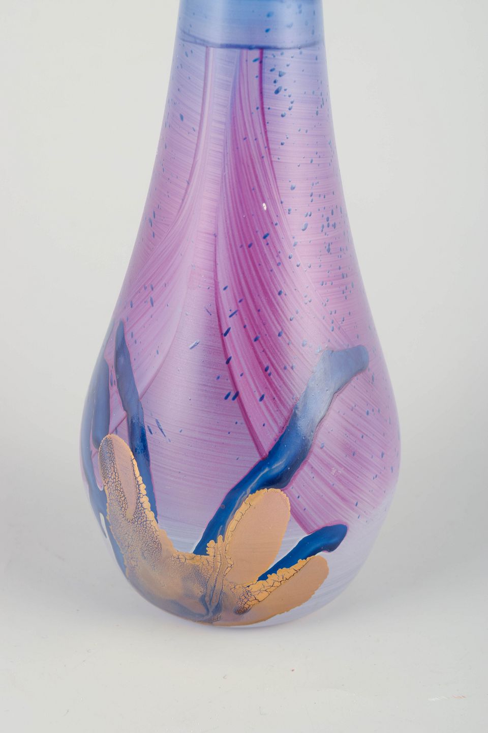 French studio glass of the 1980s was characterised by experimental colour layering, iridescent finishes and strong inspiration from both the Murano tradition and the contemporary European art-glass movement. Pieces were often made in small editions by individual glass artists with a focus on unique artistic expression.