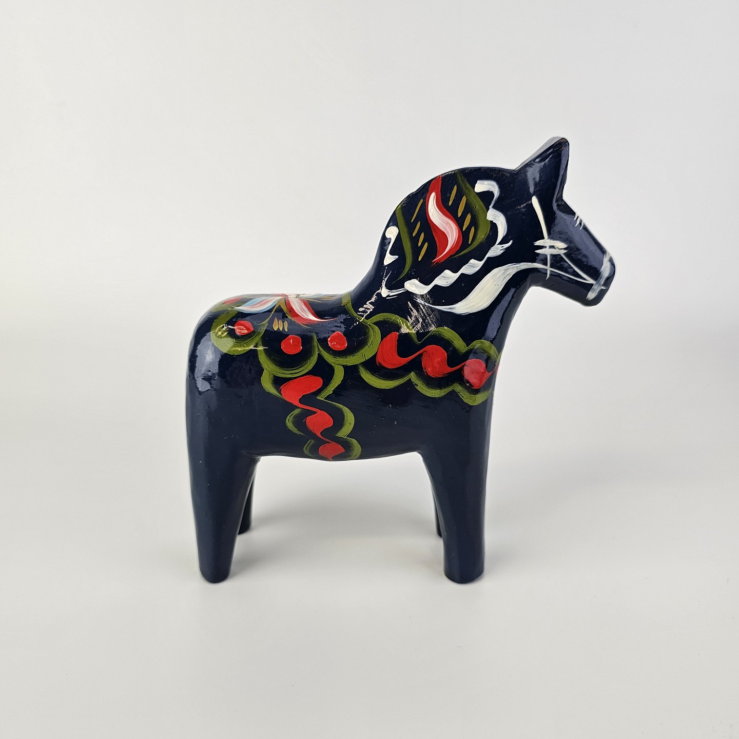 Figur af blå Dalarhest i malet og lakeret træ