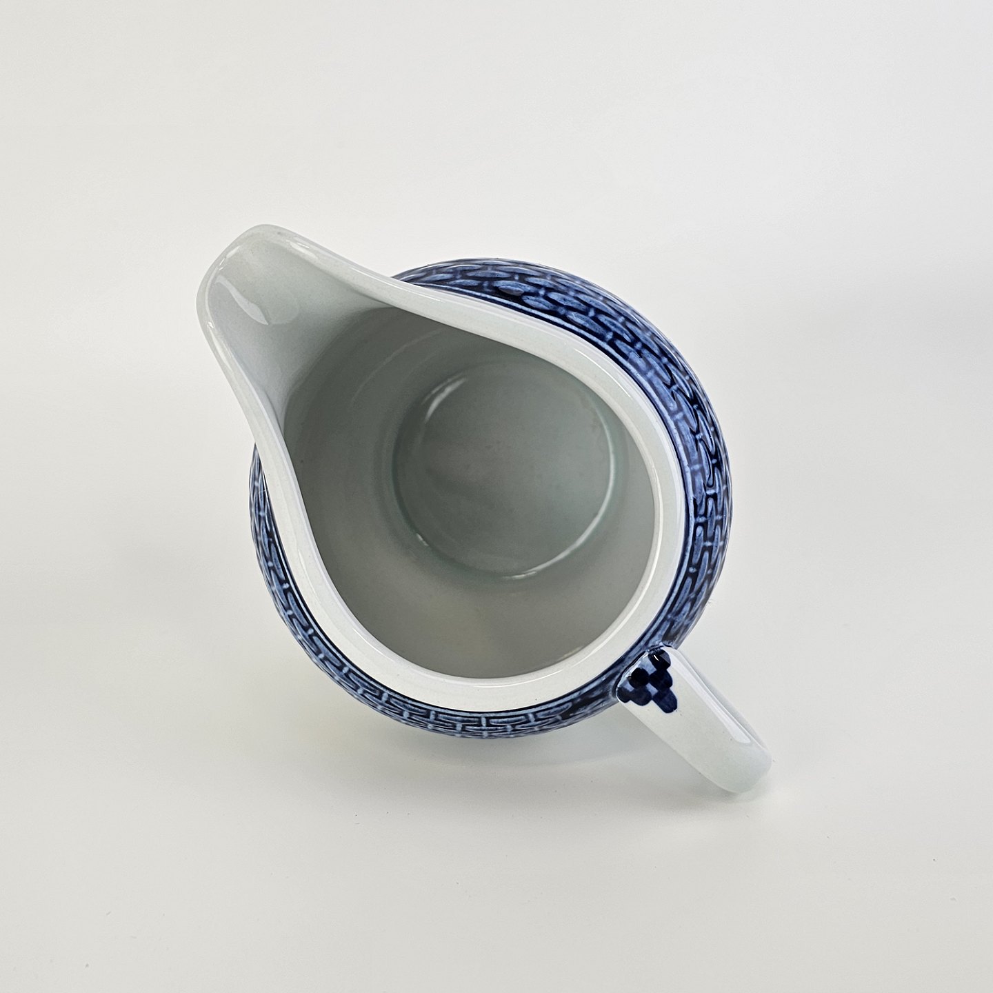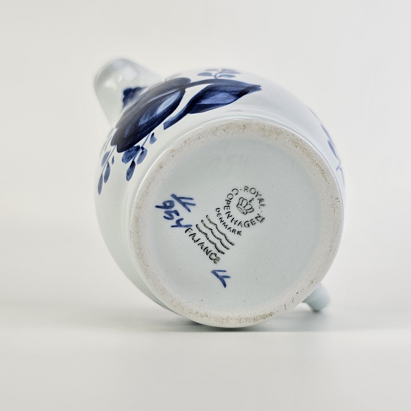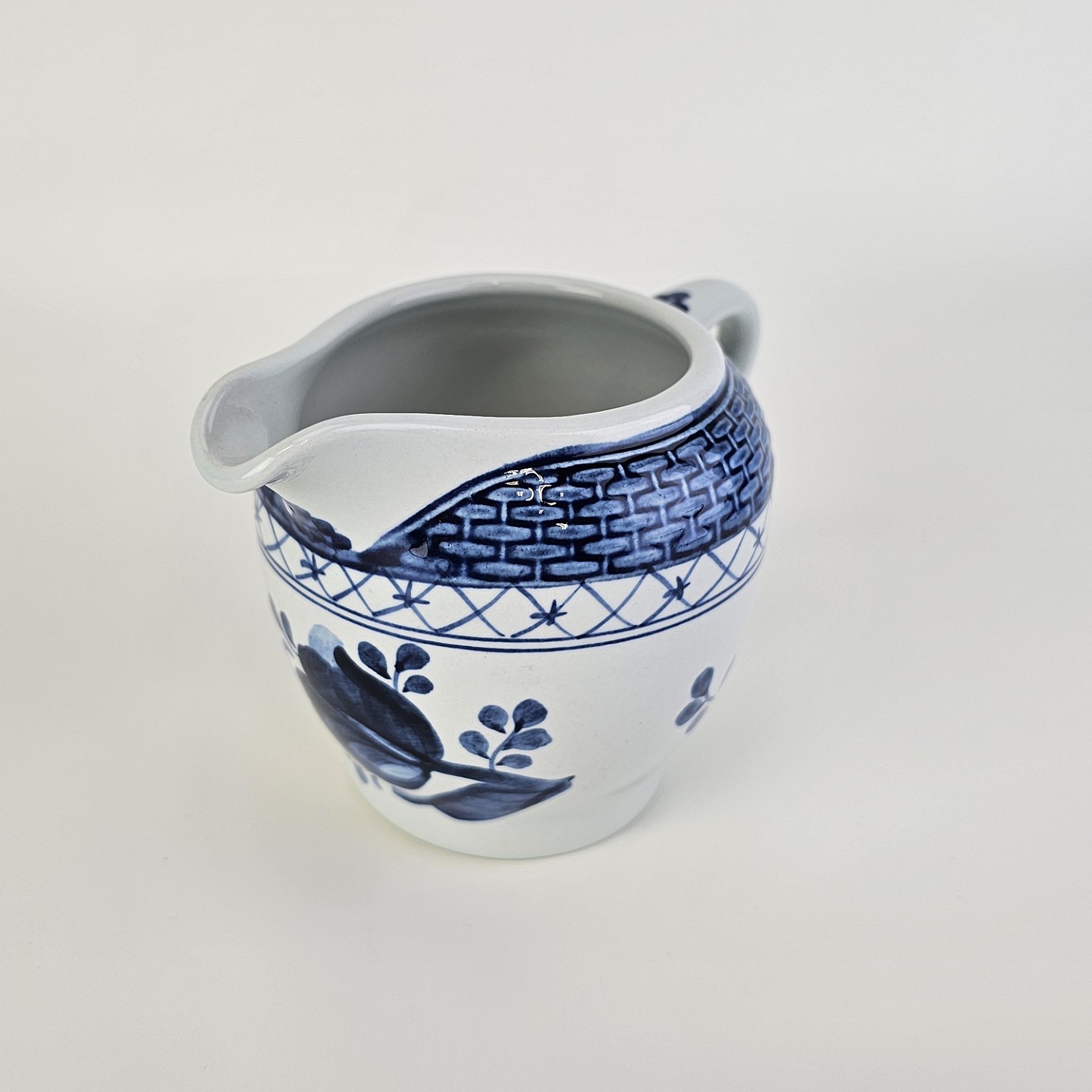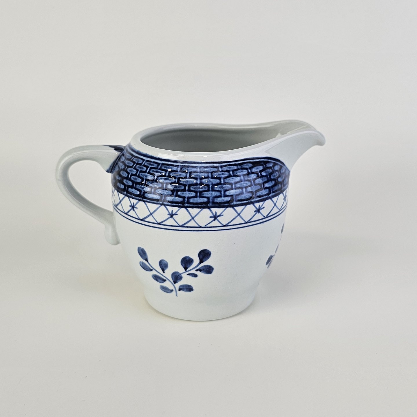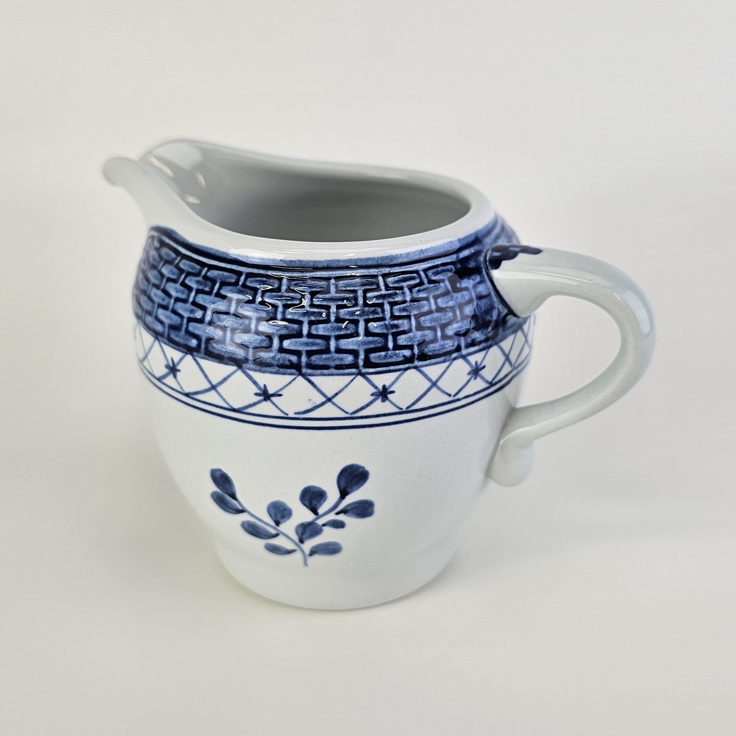 Glat Lyst fajance med blå dekoration af blomster og blå bort.
