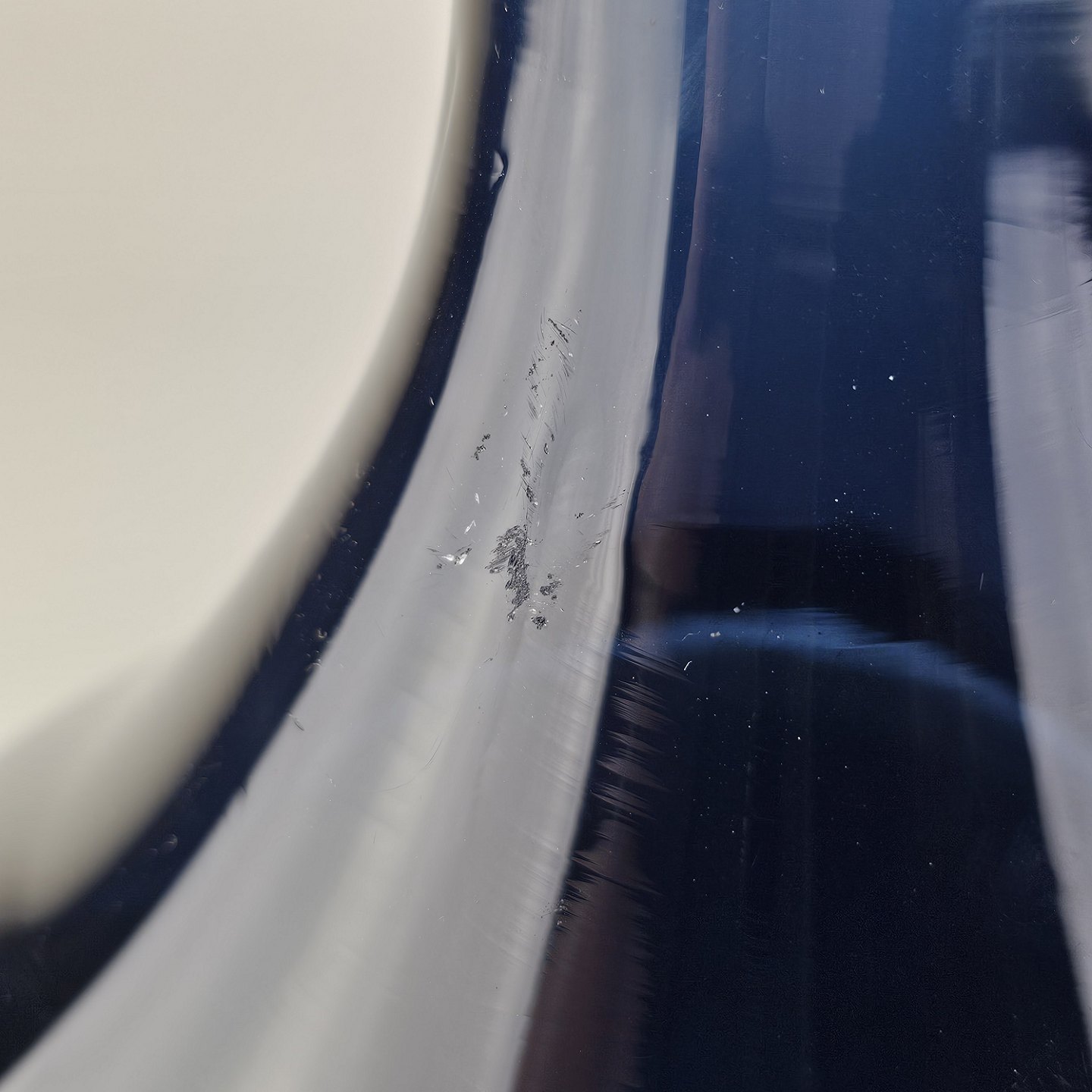 Fremstår med brugsspor, små nister i glasset