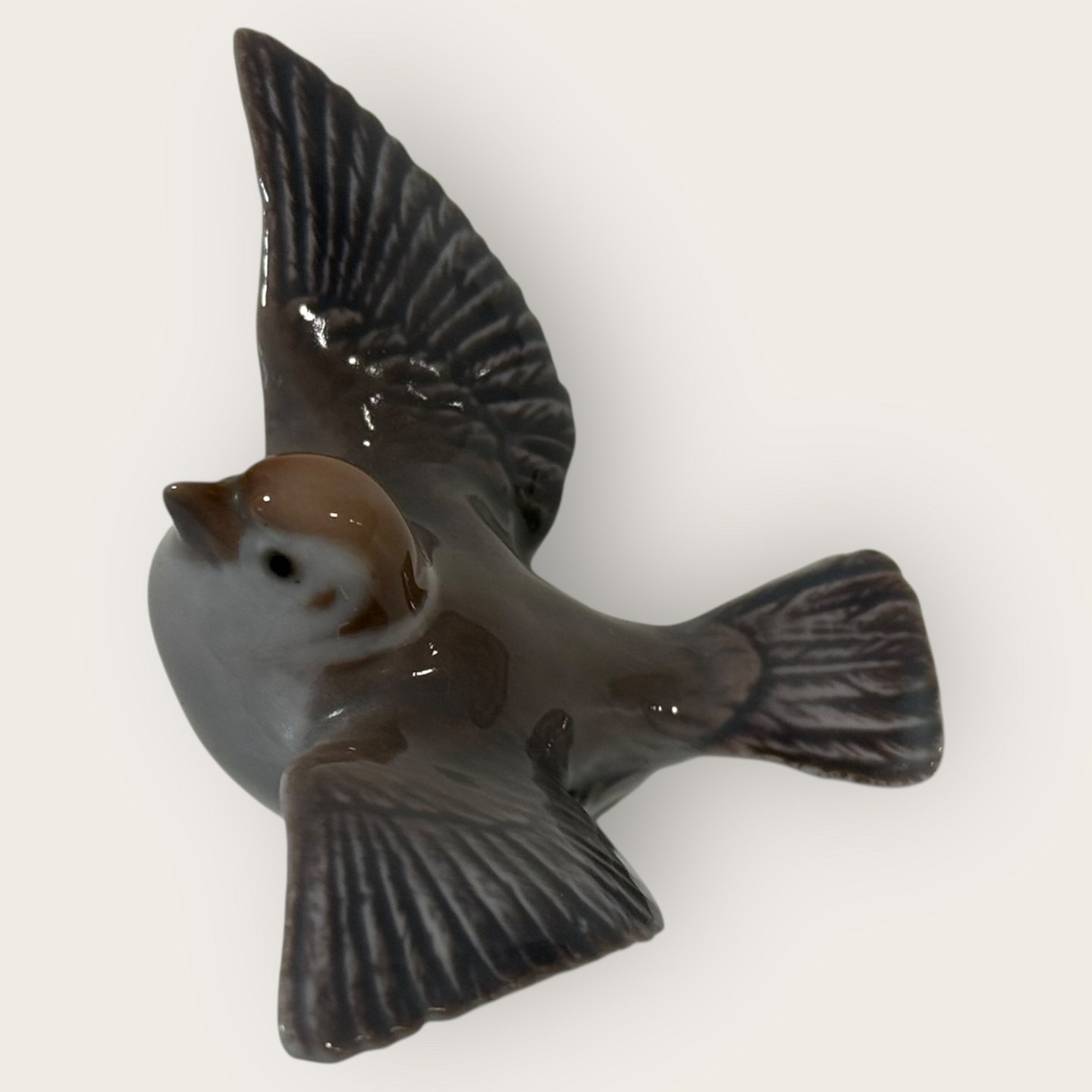 Bing & Grøndahl, Spurv med spredte vinger, # 2491, 1. sortering, Mål: ca. 5x10x7cm *Fin stand*