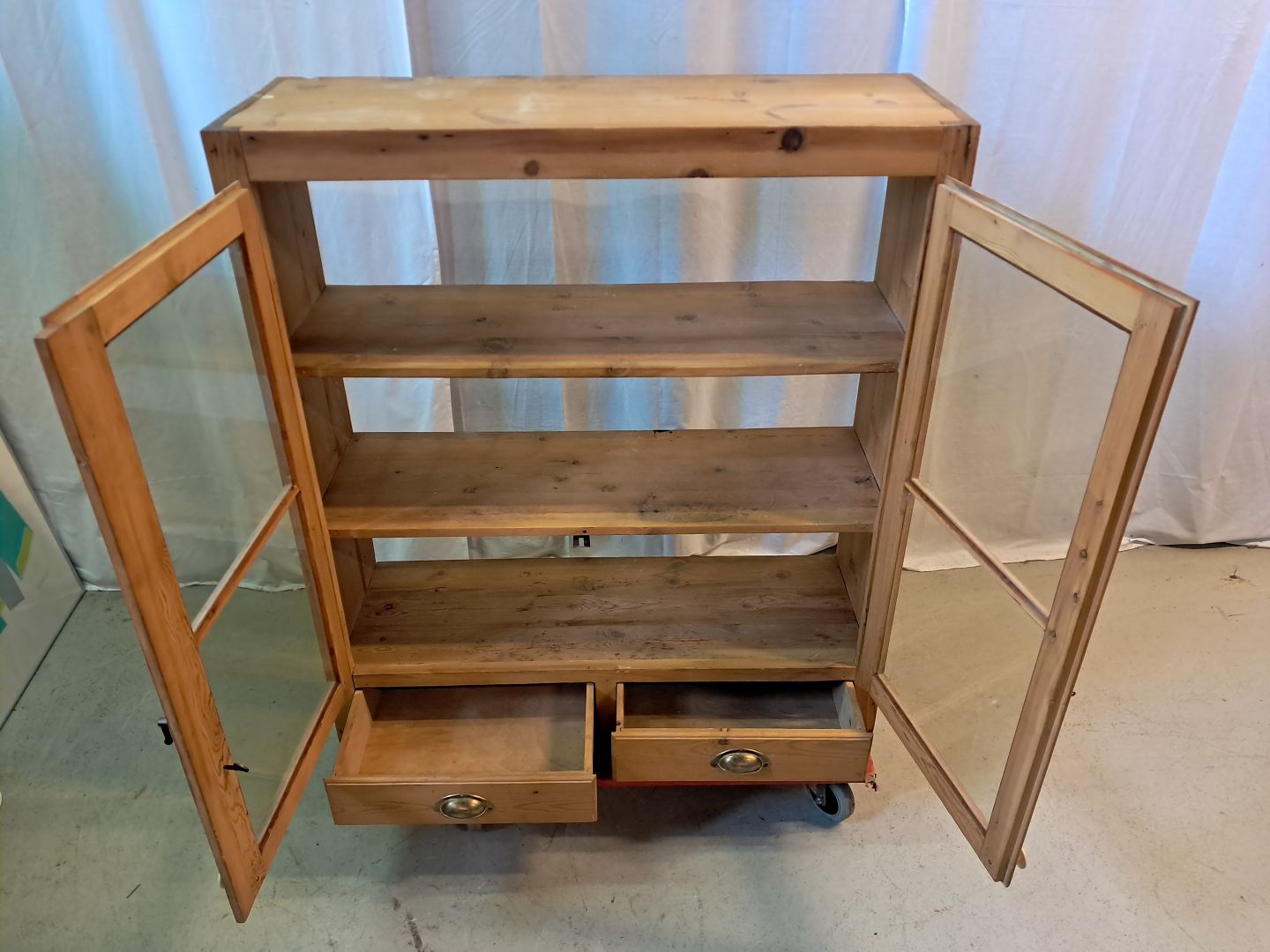 Gammelt køkkenskab i massivt fyrretræ, fra 1920erne.