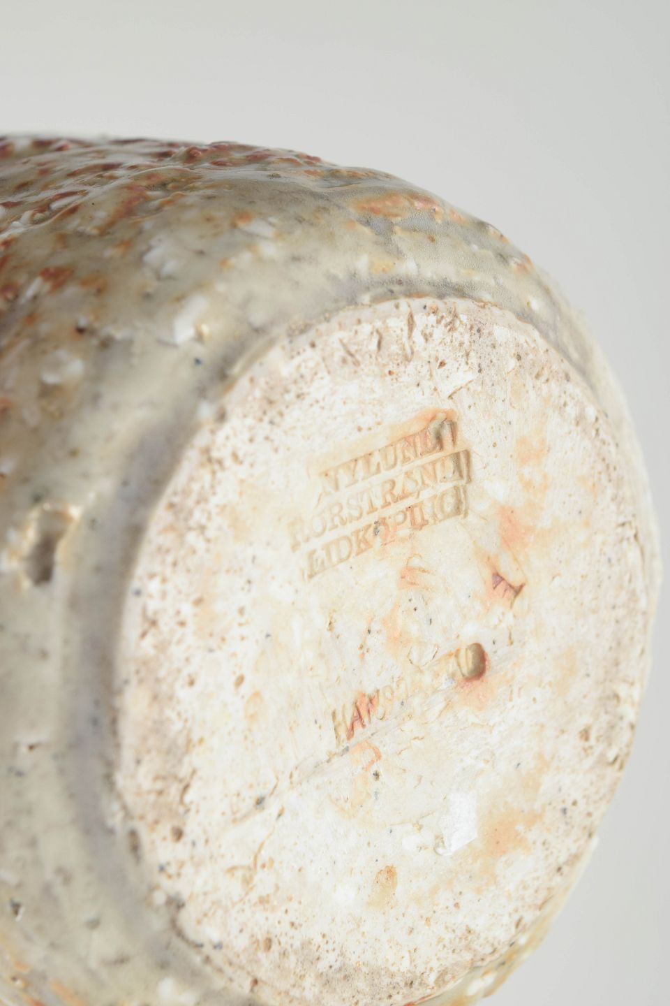Gunnar Nylund (1904–1997) var en af Rörstrands mest markante designere i det 20. århundrede. Han var kendt for sine innovative former og eksperimenterende glasurer, ofte med naturinspirerede overflader og dæmpede farver. Nylunds værker fra 1950’erne og 60’erne repræsenterer en moden fase i hans karriere, hvor det rustikke og det raffinerede smelter sammen i et skulpturelt udtryk.