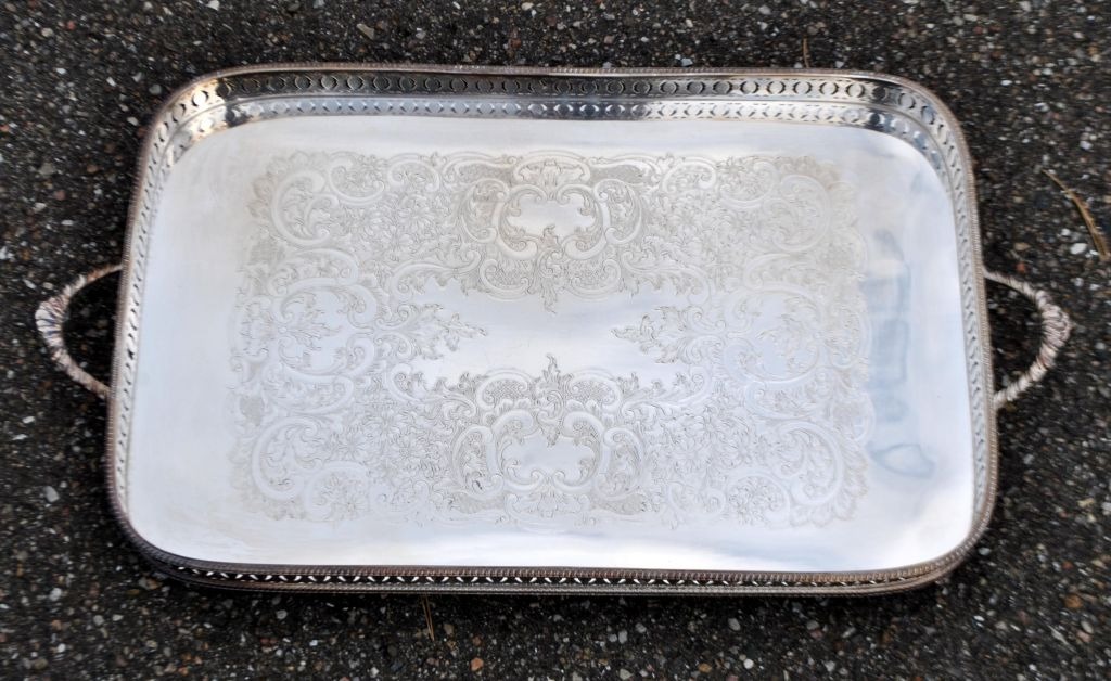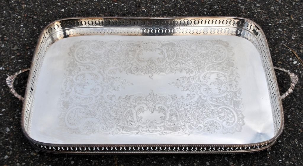 Stor engelsk forsølvet serveringsbakke, 20. årh.