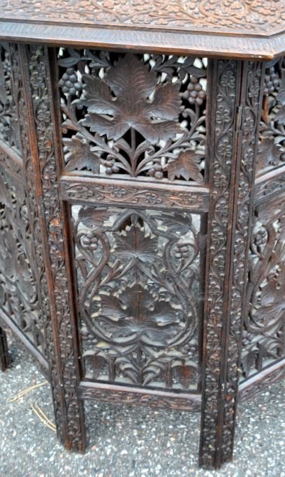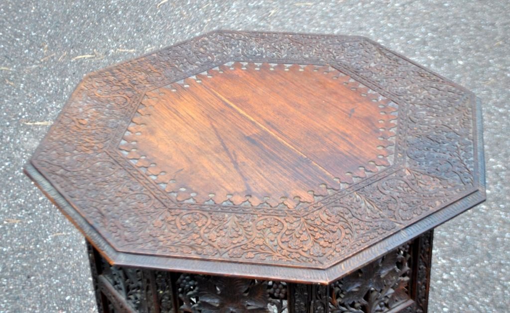Arabisk ottekandet rygebord med talrige skæringer, 19. årh. Bejdset træ. H.: 64 cm. B.: 60 cm.