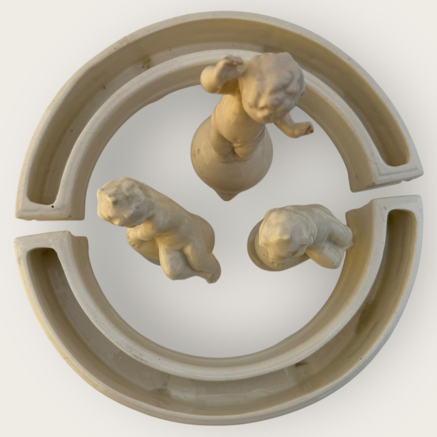 Centerpiece, Faience table tableau with figures, Cream white faience, *Good used condition, with a few very small chips*