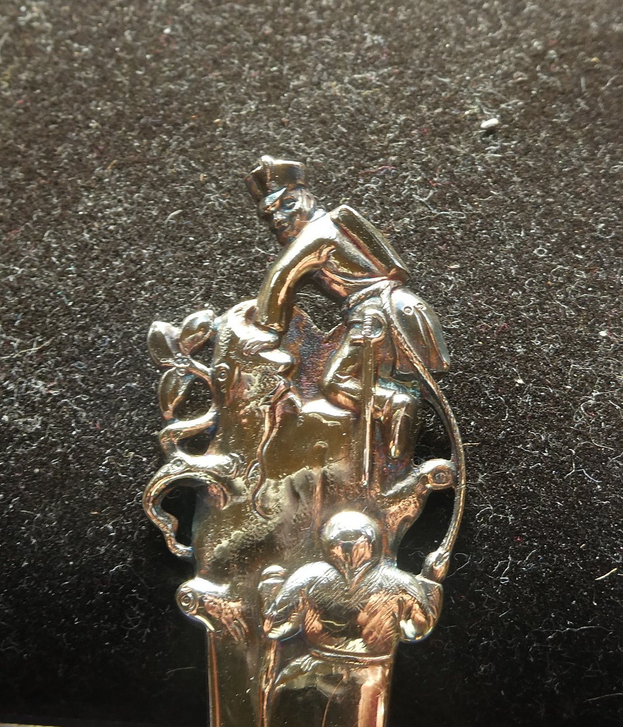 H.C. Andersen barnebestik i tretårnet forgyldt sølv med Fyrtøjet.