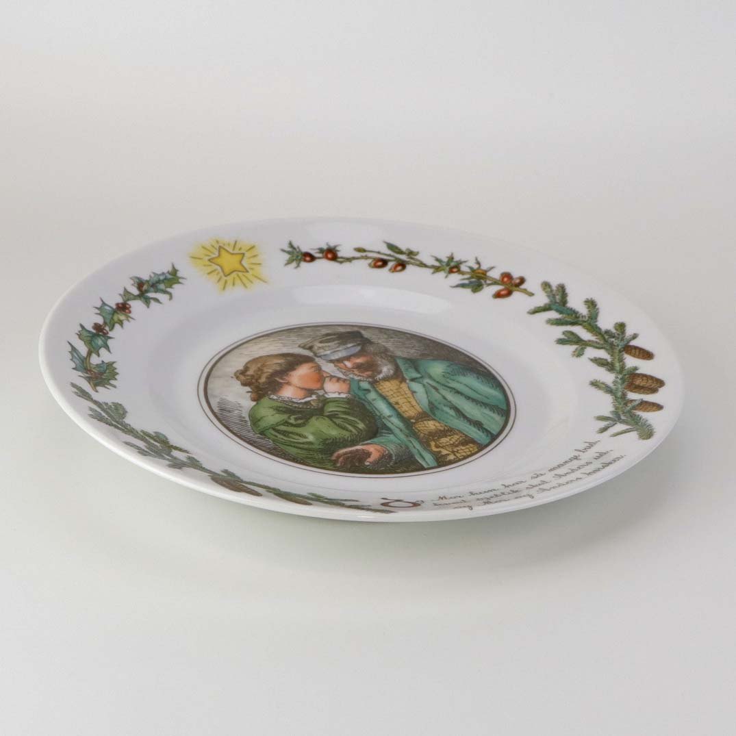 Flad desserttallerken i kongeligt porcelæn fra serien Peters Jul med motiv af mor og Anders. Nr. 2