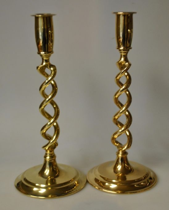 Et par engelske "proptrækker " stager i messing, 19. årh. H.: 26 cm.