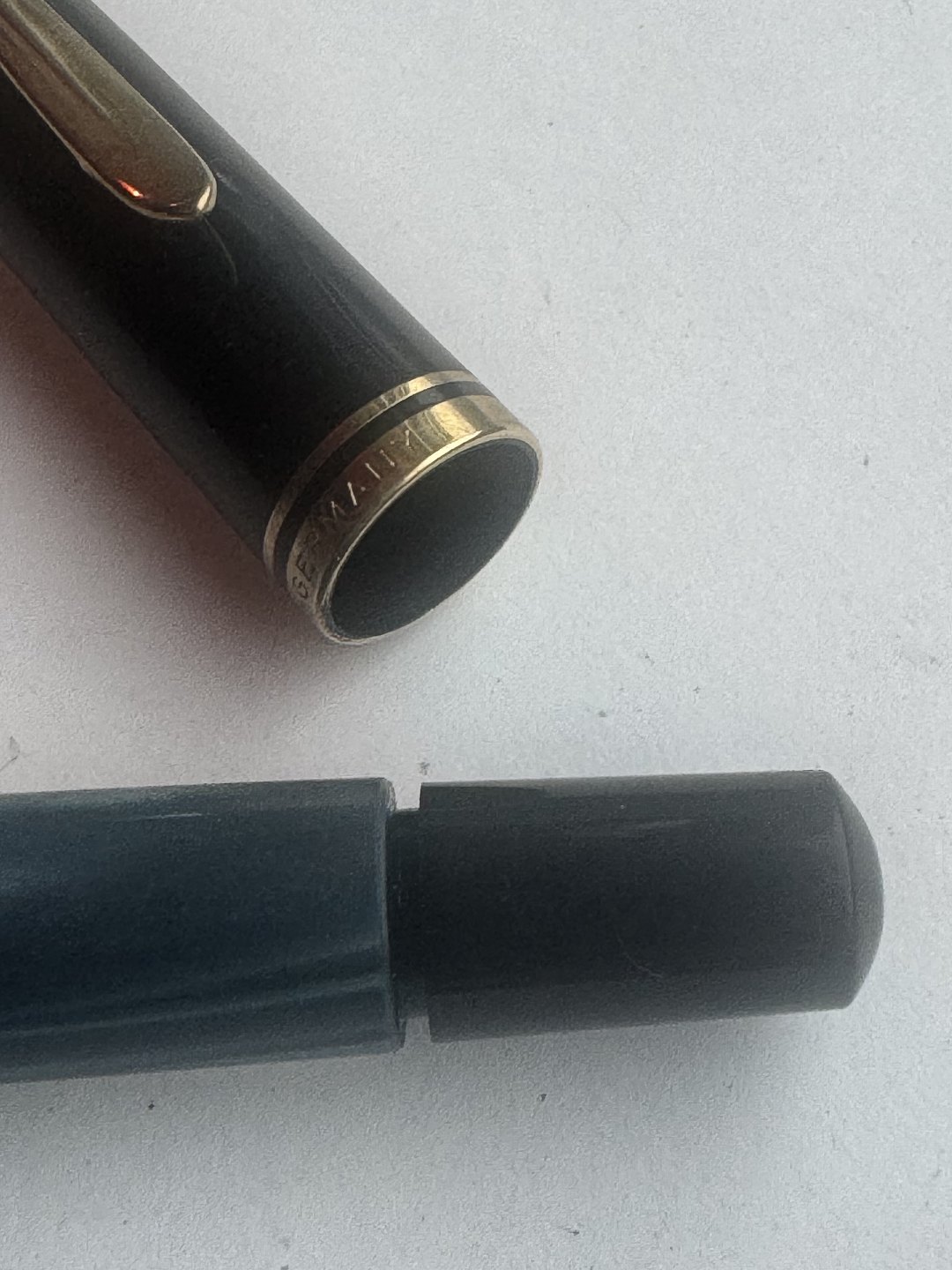 Pelikan M200 fyldepen. Fremstillet i Vest-Tyskland i 1970’erne. Den lille kapsel med logo på toppen af hætten har en revne (se foto). Eller i god funktionsduelig stand.