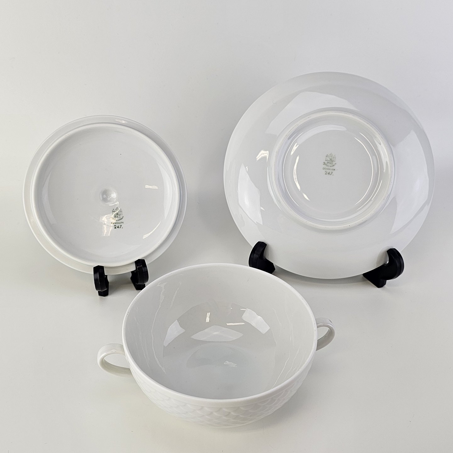 Elegance er hvidt glaseret porcelæn med skæl mønster