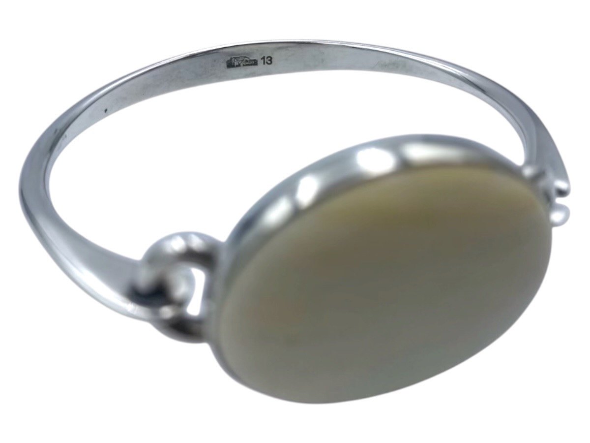 Niels Erik From sterlingsølv, moderne moderne armring med stor hvid stykke ben.
