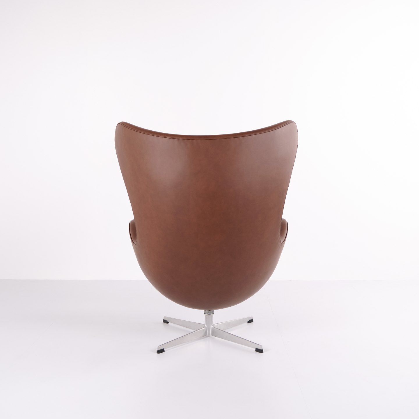 Arne Jacobsen Ægget, model 3316 fra Fritz Hansen. Ny­polstret i brunt læder. Et dansk designikon fra 1958.