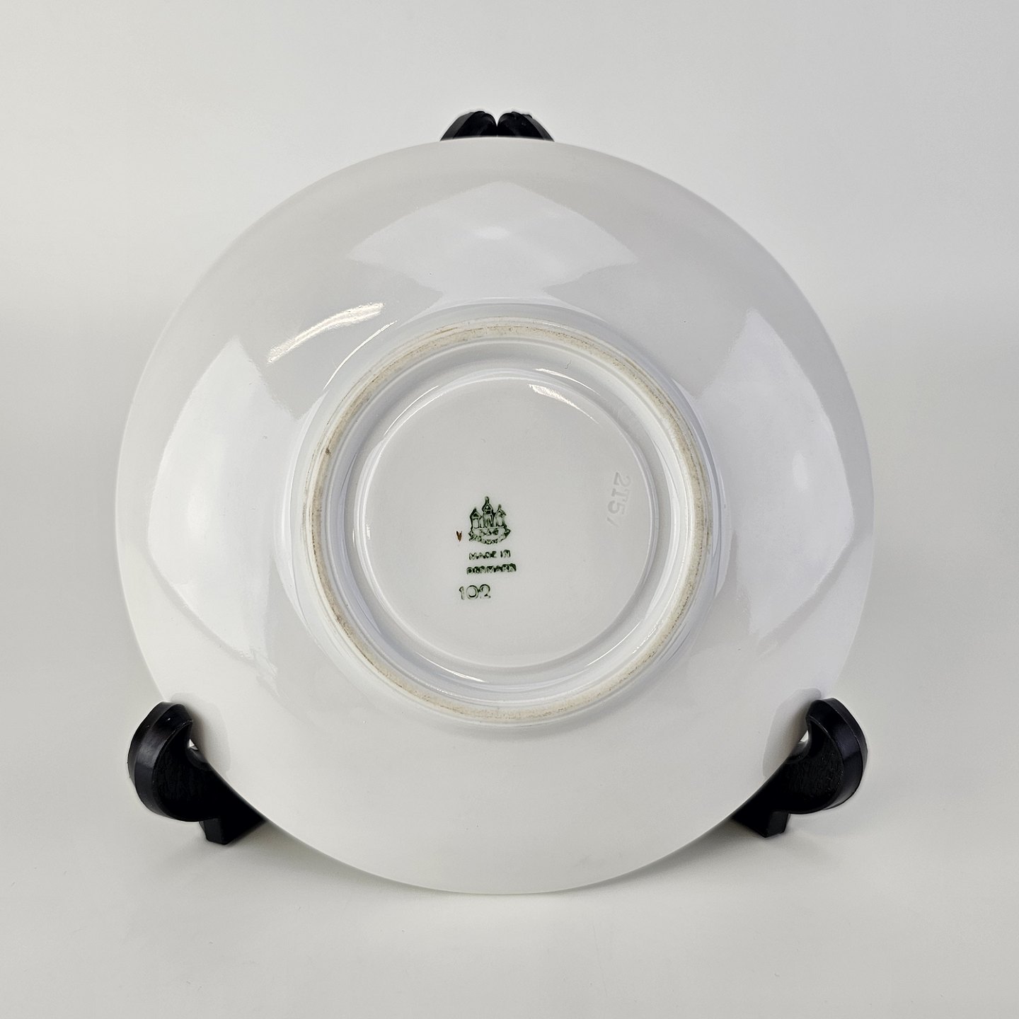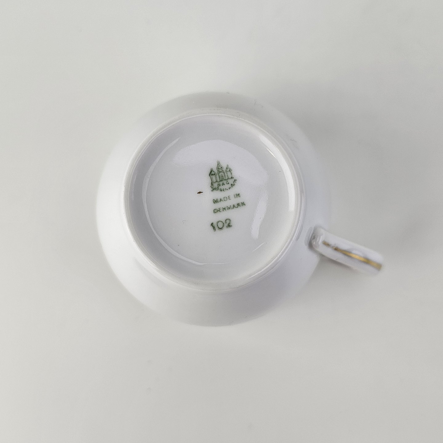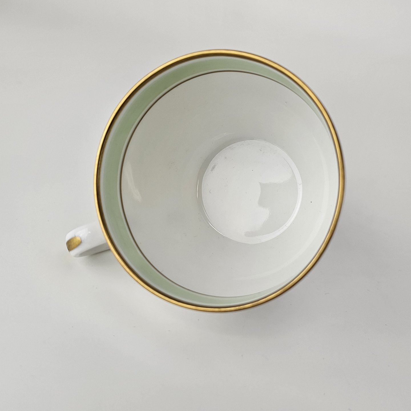 Glat hvidt porcelæn med lysegrøn bord og guldkant
