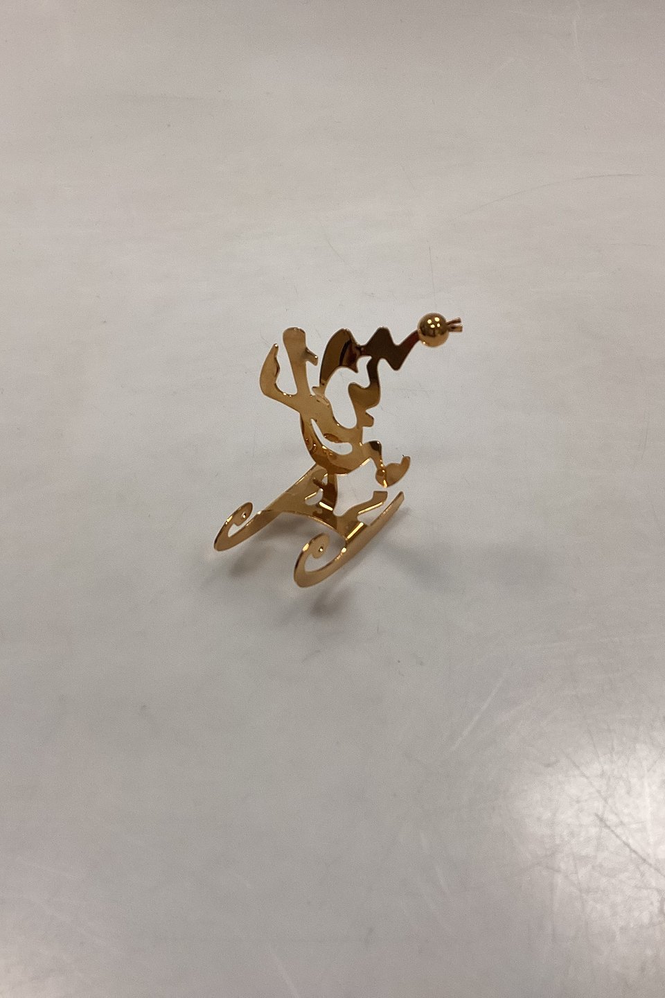 Georg Jensen Christmas Classics Julepynt - Nisse på Kælk. Designet af Leo Griffin. Stål forgyldt med 24-karat guld.