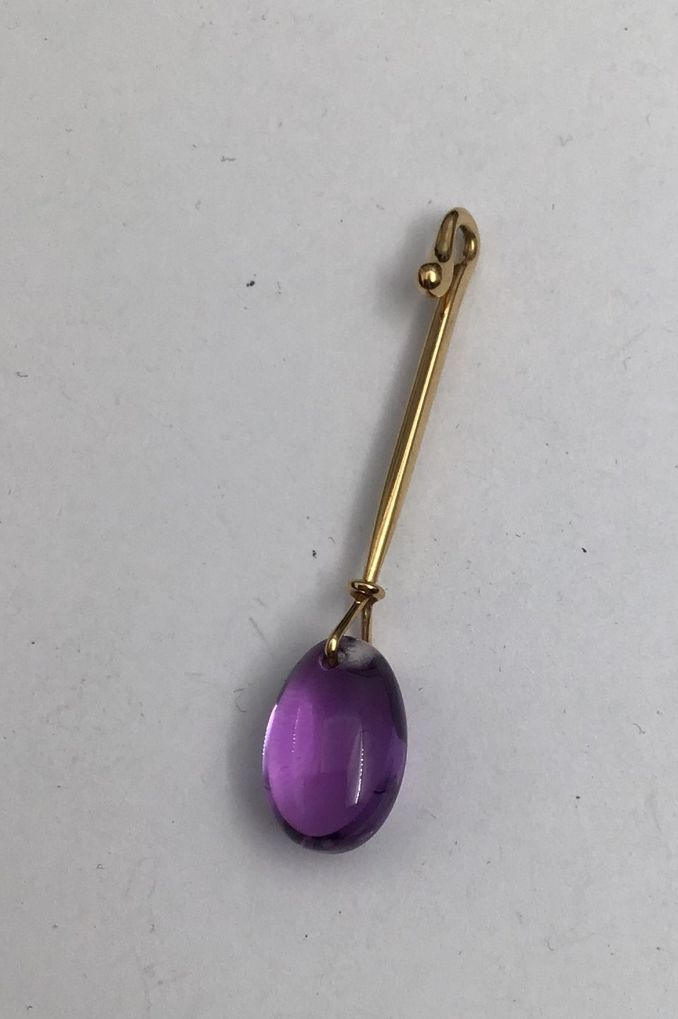 Georg Jensen 18K Gold Pendant Dew Drop No. 1128 Amethyst Torun