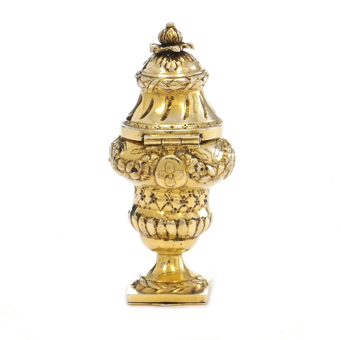 Hovedvandsæg i delvist forgyldt sølv af Christian Nielsen Lindbach, 1767-1815, København. H: 7,6cm |