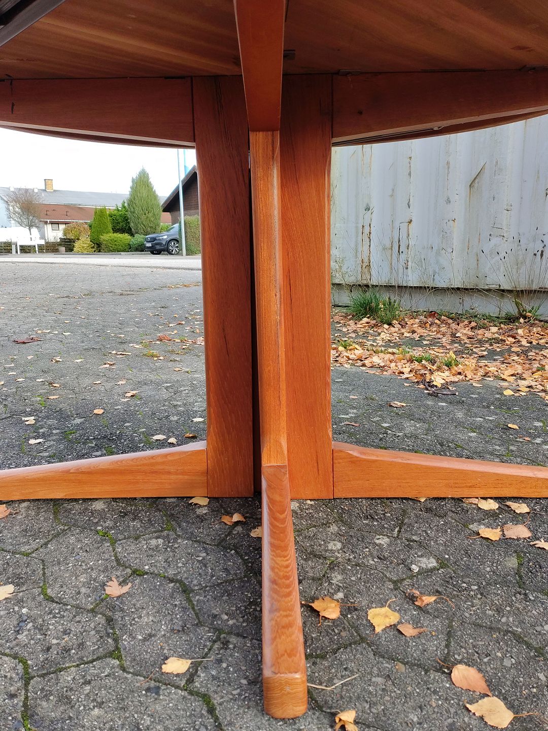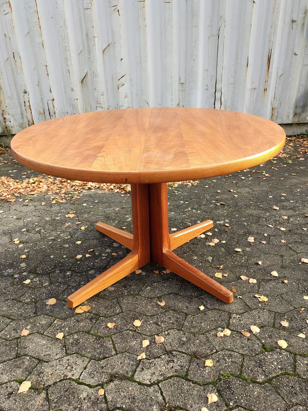 Spisebord i fineret teaktræ med 2 tillægsplader, fra 1960erne.