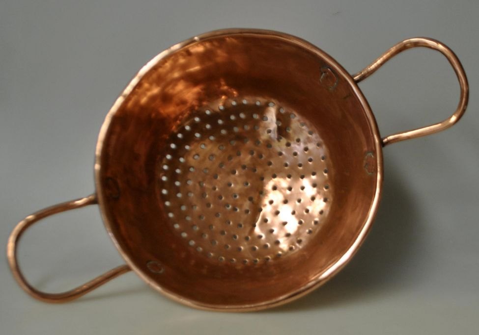 Kobber dørslag, 19. årh. Danmark. Ustemplet. L: 35 cm. H.: 9 cm. Dia.: 21 cm.