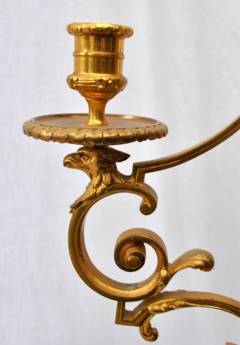 Fransk lueforgyldt bronzekrone med tre lys, 19. Årh.