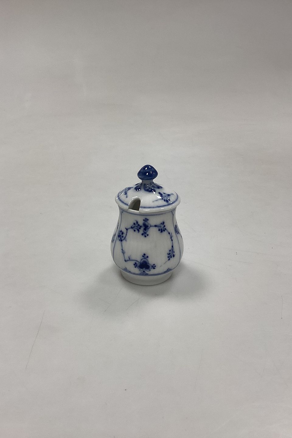 Royal Copenhagen Musselmalet Riflet Lille Sennepskrukke No. 358. Måler 7 cm / 2,75 in. 1. Sortering