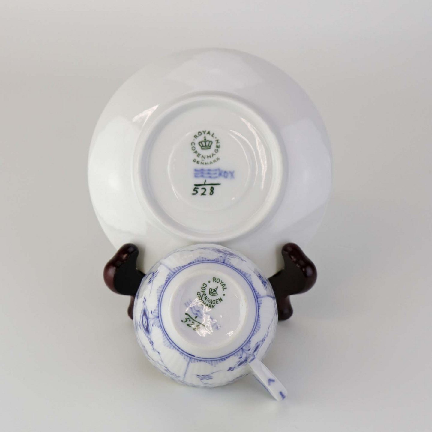 Mokkakop med underkop i kongeligt porcelæn fra stellet Musselmalet Halvblonde. Nr. 1/528