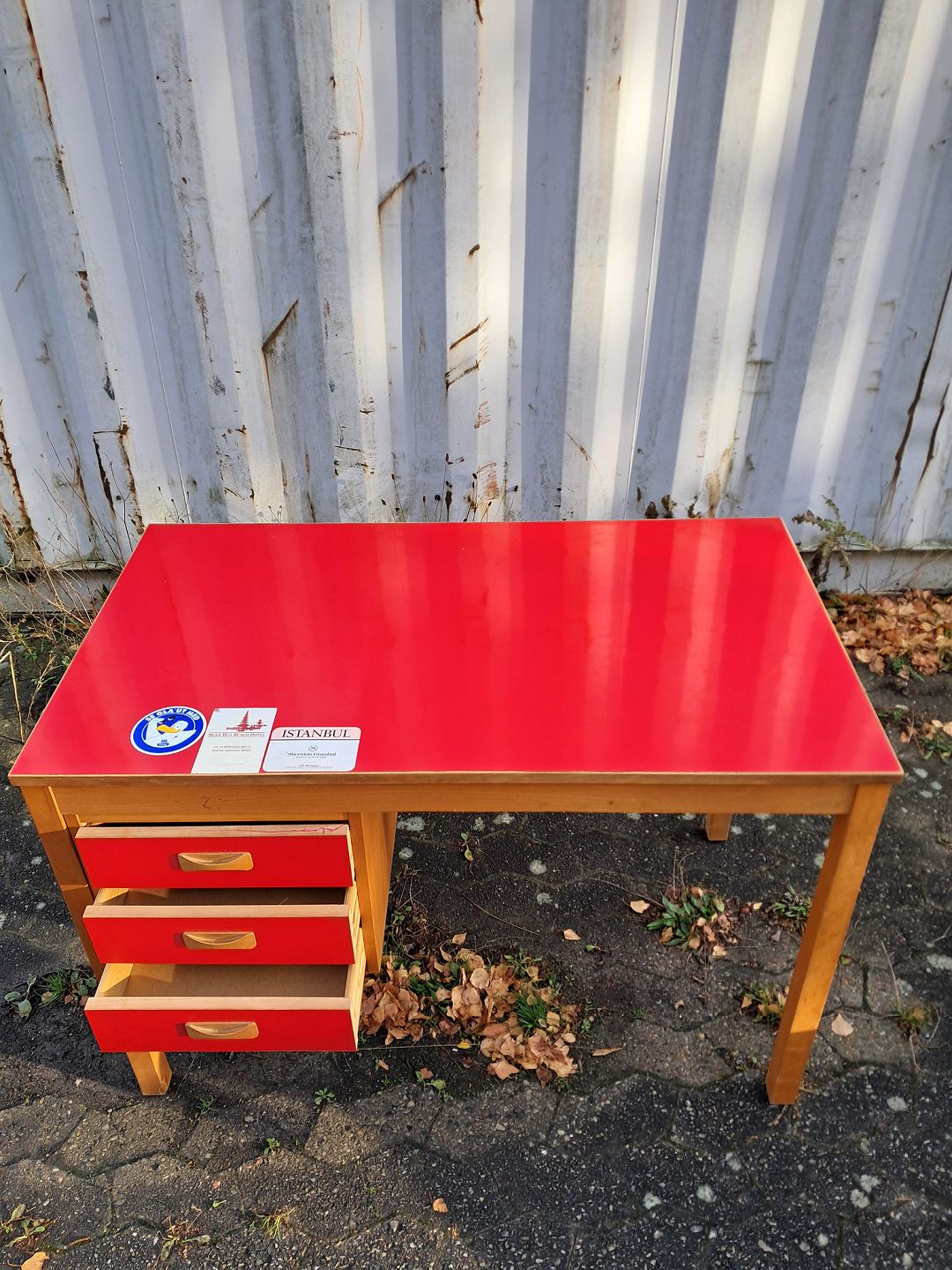 Skrivebord i bøgetræ med formikaplade, fra 1980erne.