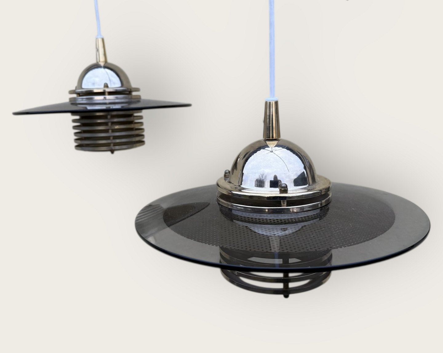 Jan-Eskild Eskildsson, Belid, Sverige, Reflektor Loftlampe i røgfarvet glas og messing, Diameter 29cm *pæn stand*