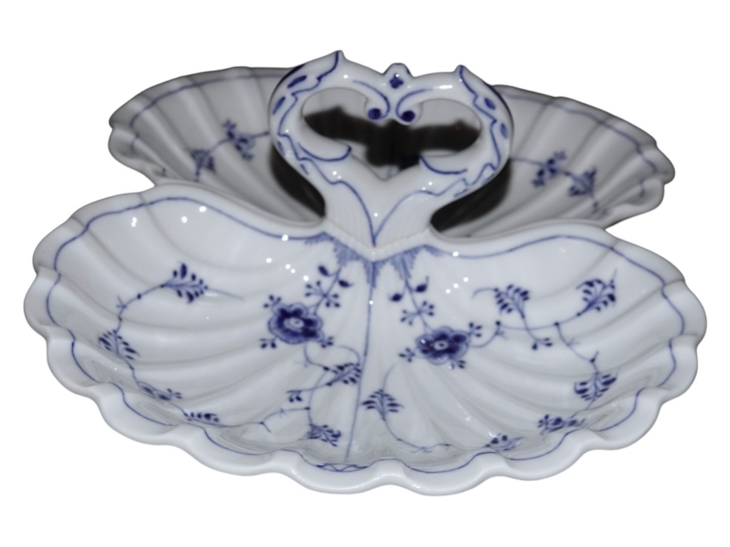 Royal Copenhagen Musselmalet Riflet, to-delt cabaretfad med hank.