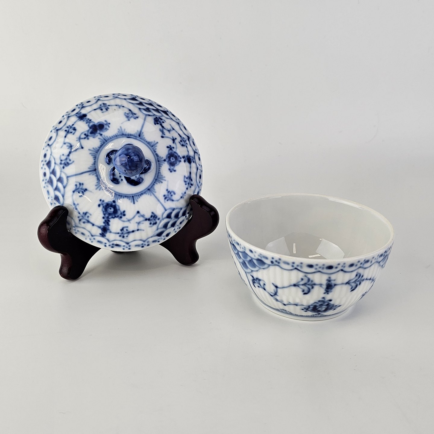 Sukkerskål i kongeligt porcelæn fra stellet Musselmalet Halvblonde