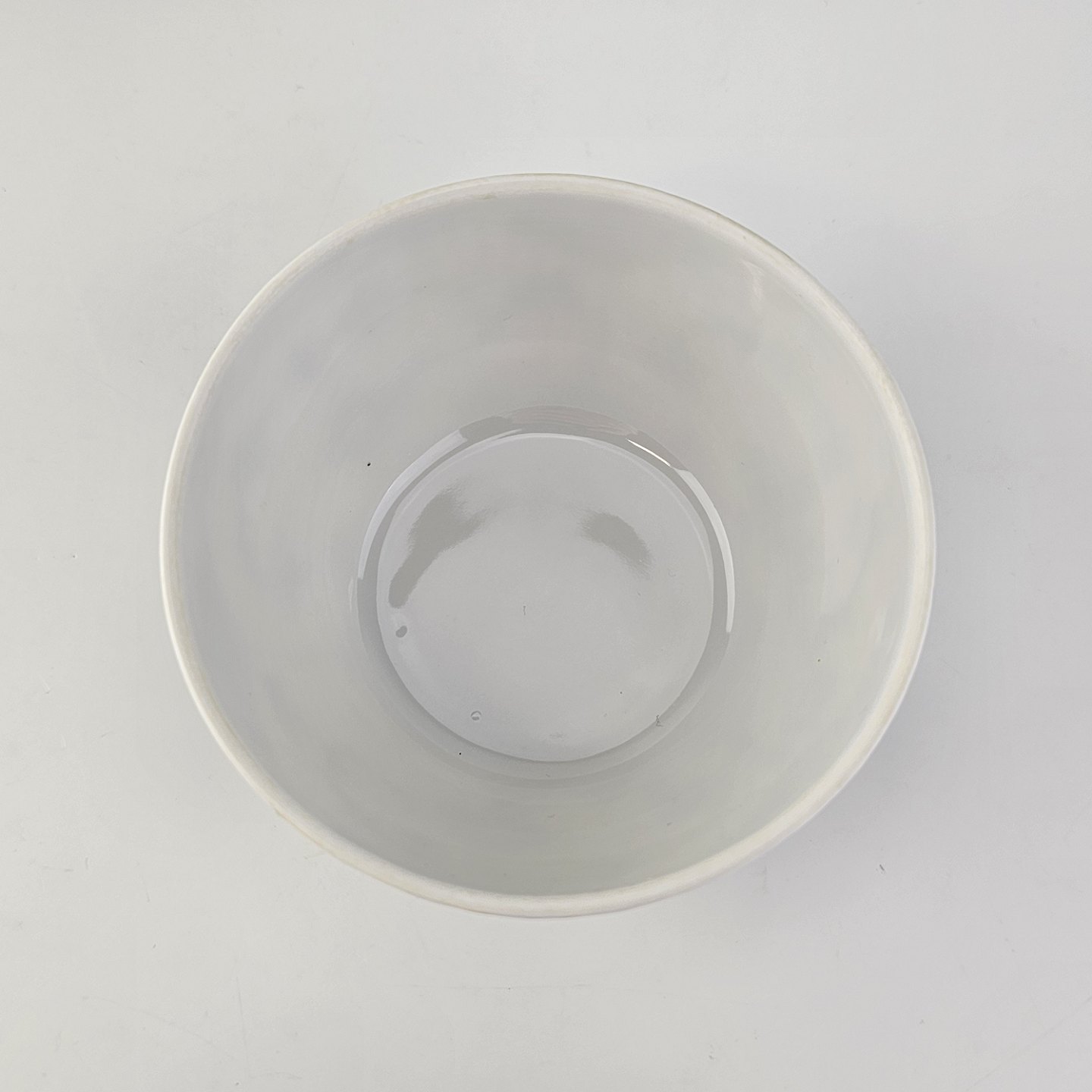 Musselmalet halvblonde er riflet hvidt porcelæn med dekoration af blå ranker og en kant med blonder.