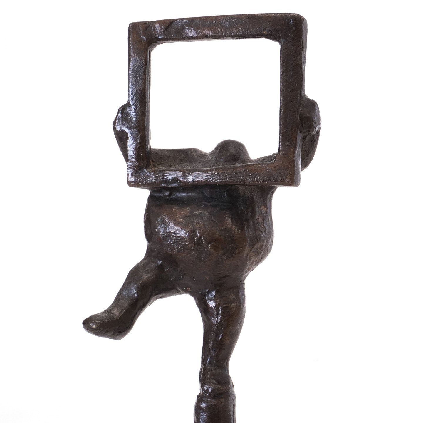 Keld Moseholm bronzefigur i form af mand med ramme. Signeret. H: 15,5cm