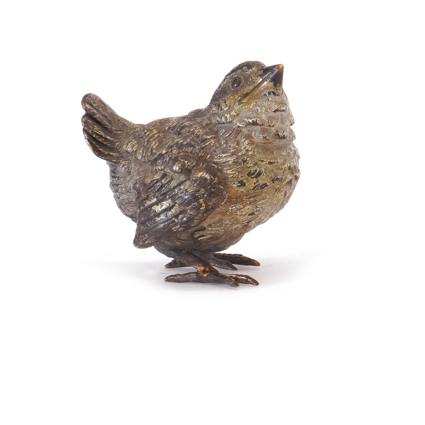 Polykrom dekoreret wiener bronze i form af fugl. H: 5cm. L: 5,5cm
