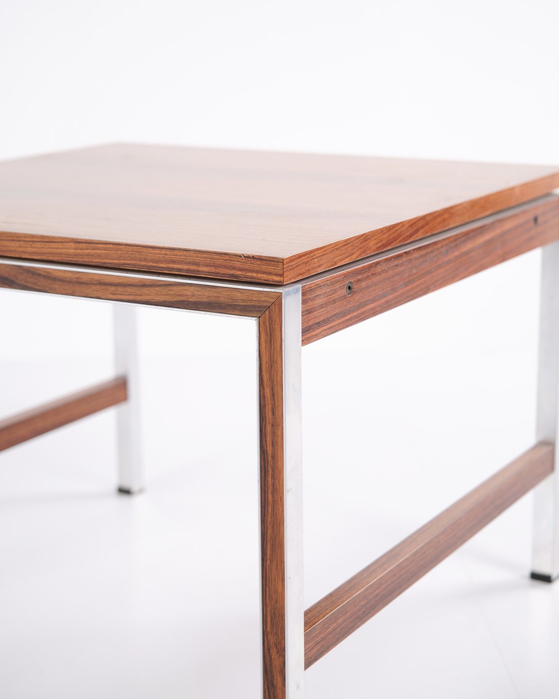 Side- / lampebord fra 1960’erne, udført i palisander med aluminiumsdetaljer. Klassisk dansk design velegnet som sofabord, lampebord eller sengebord.