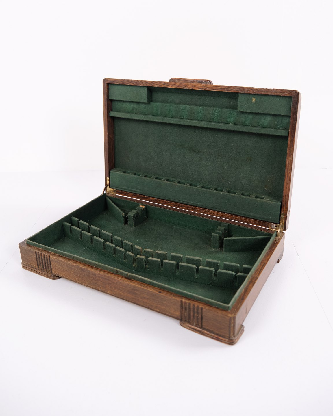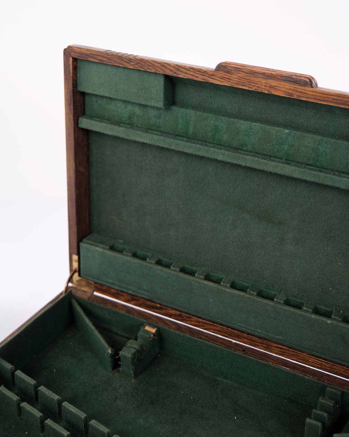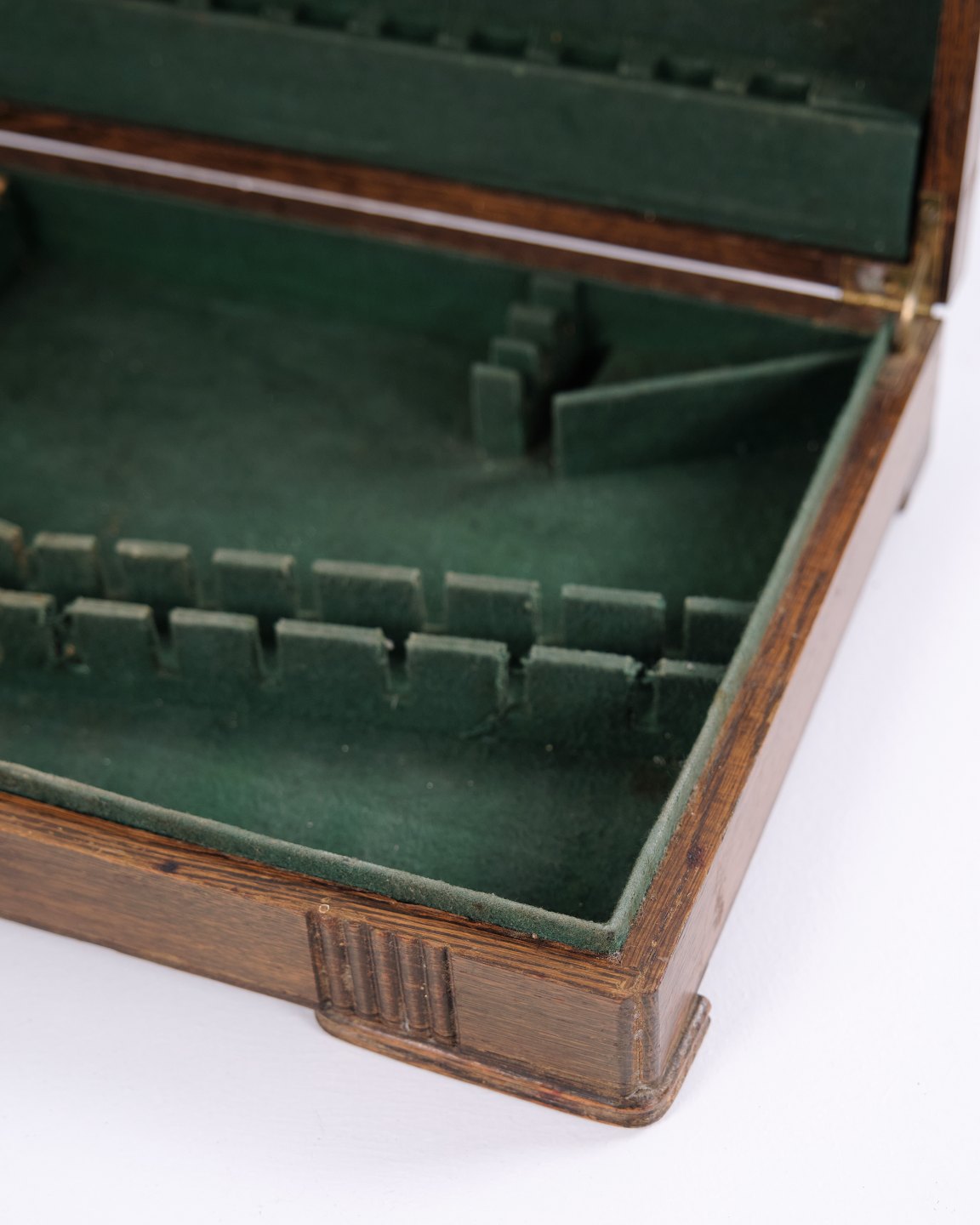 Bestikkasse - Egetræ - Grøn - Messing beslag - Antik