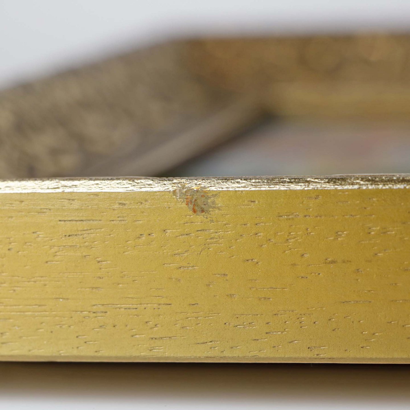 Fremstår med to minimale huller i lærredet samt mindre brugsspor på rammen.