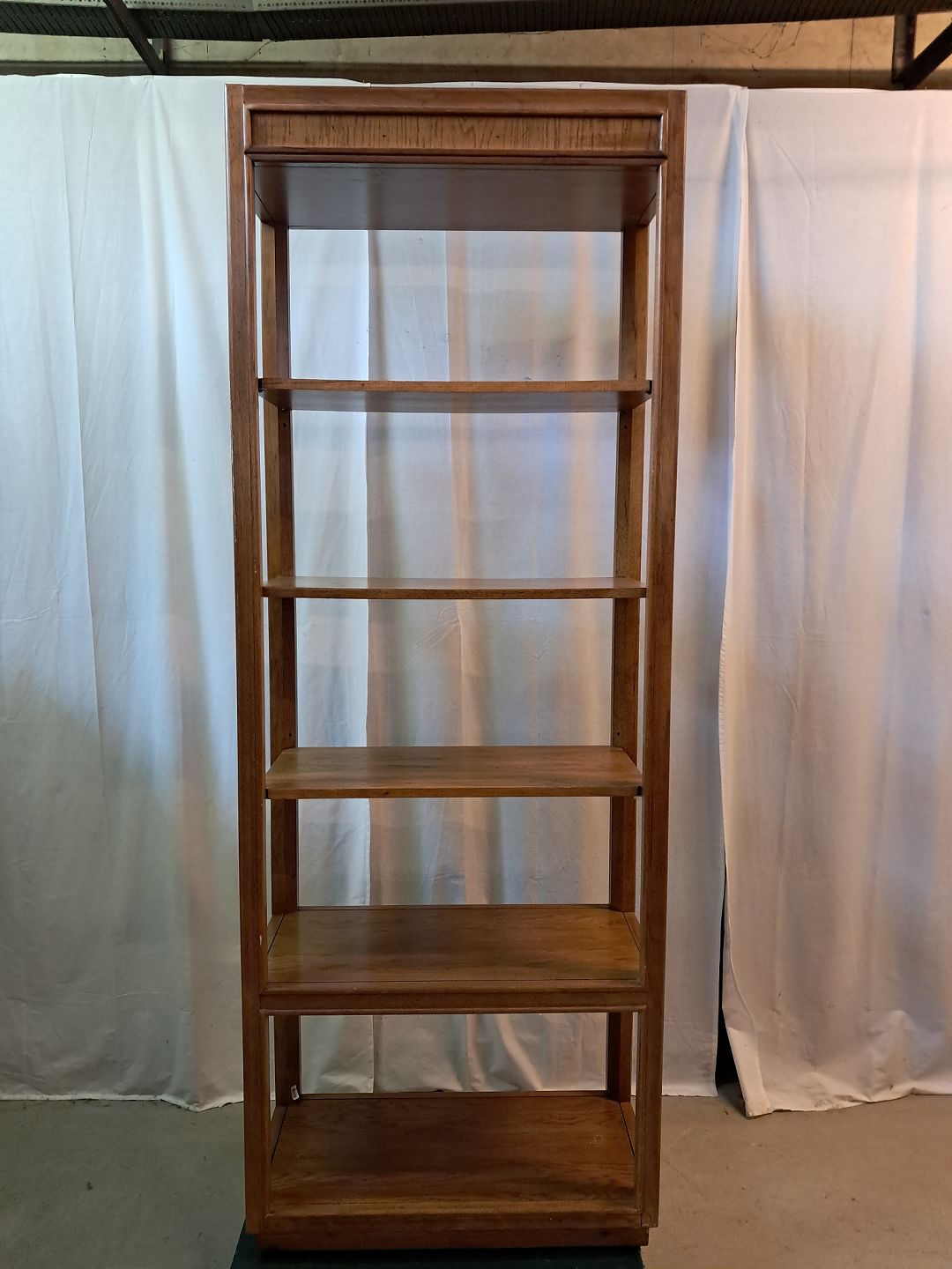 Amerikansk reol i fineret egetræ, fra 1990erne.