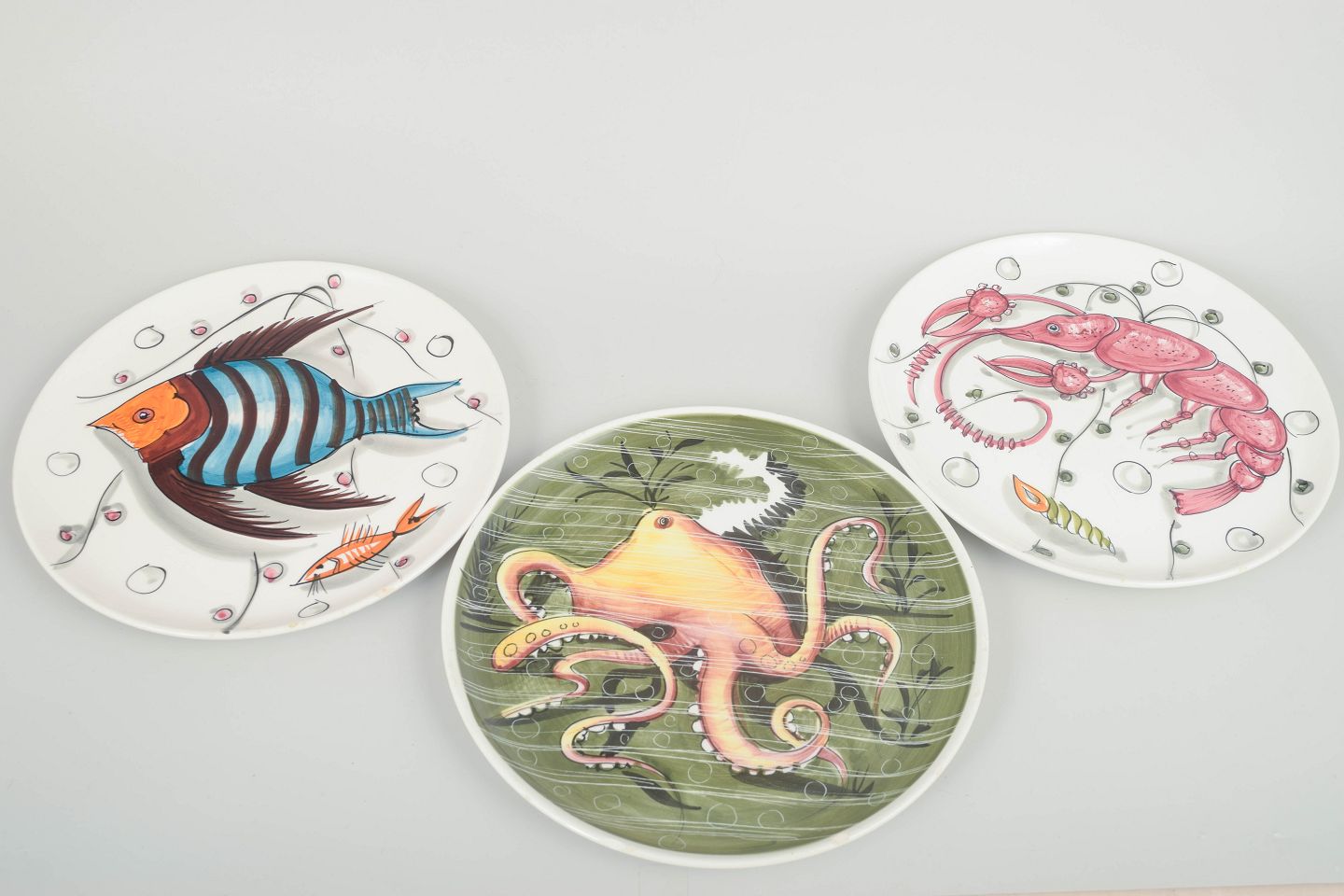 5 fajance tallerkener, 1960’erne.