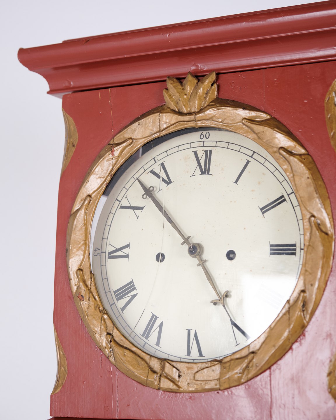Stander ur / bornholmerur - Rød bemalet - udskæringer - 1820'erne