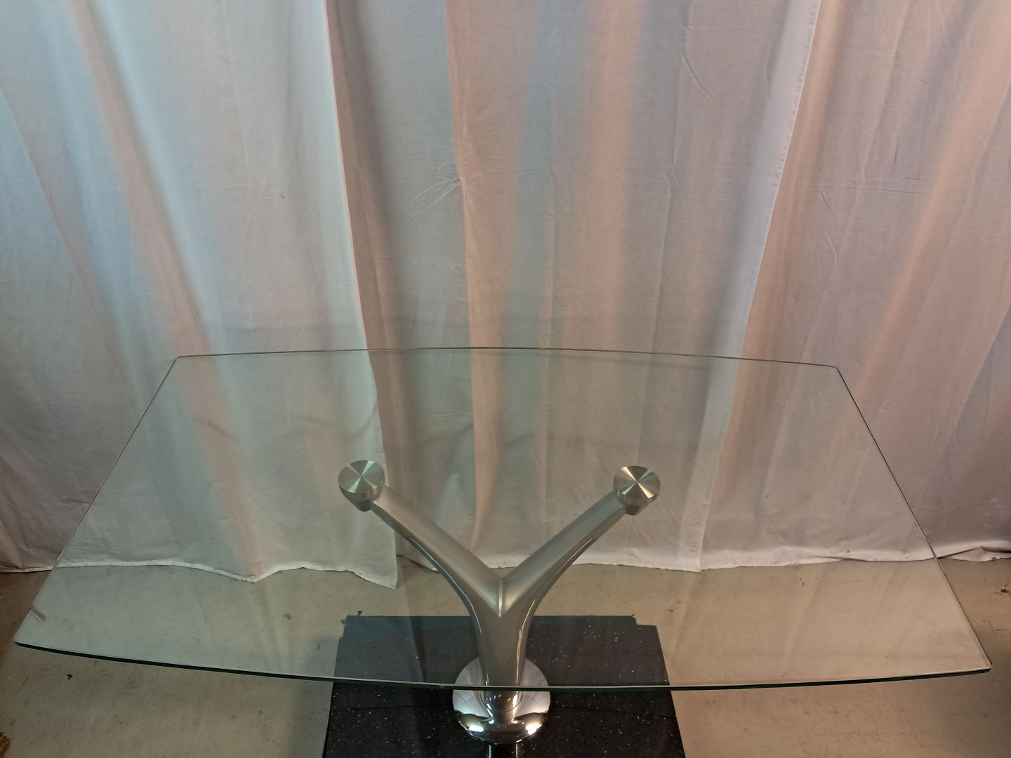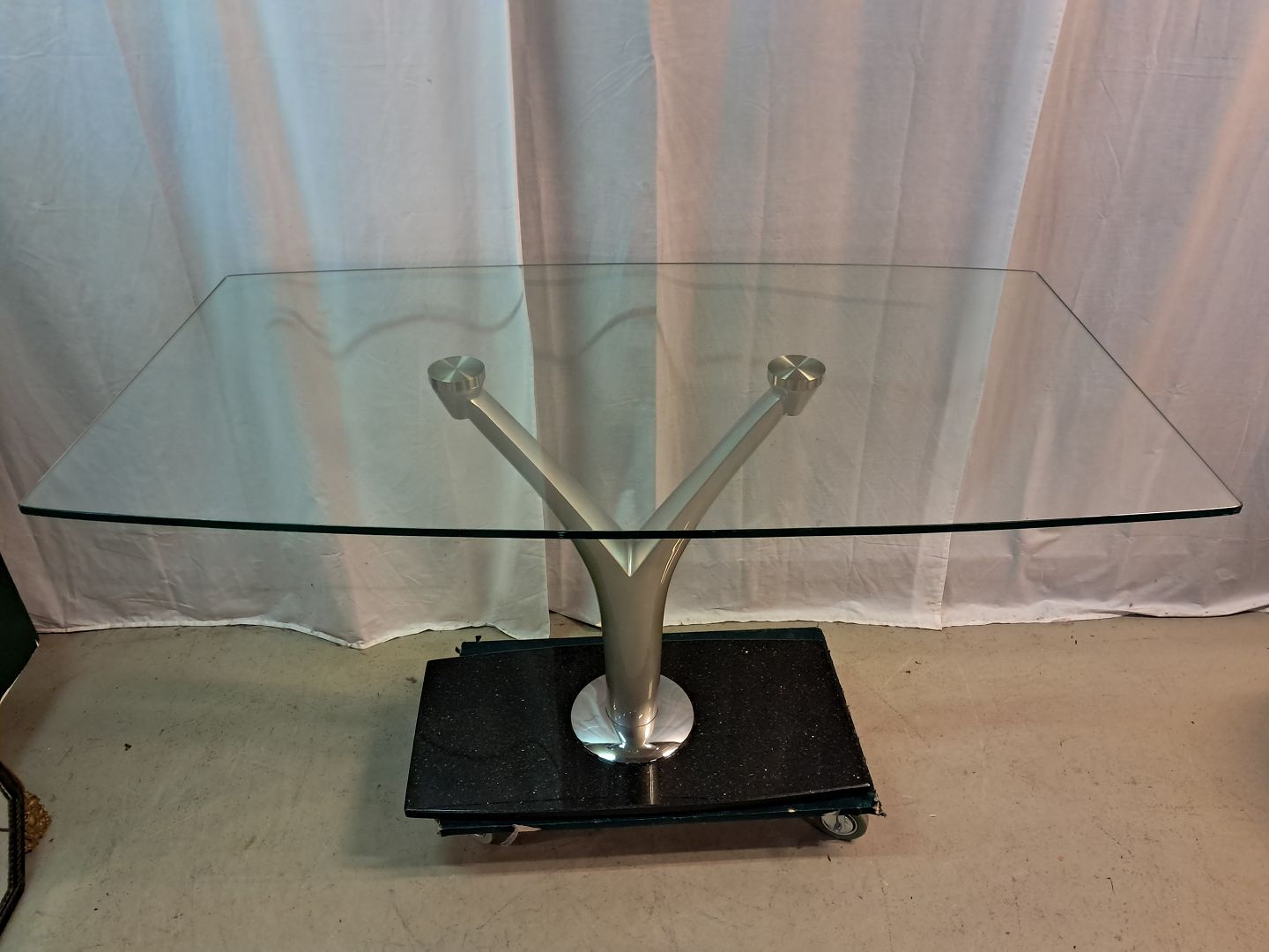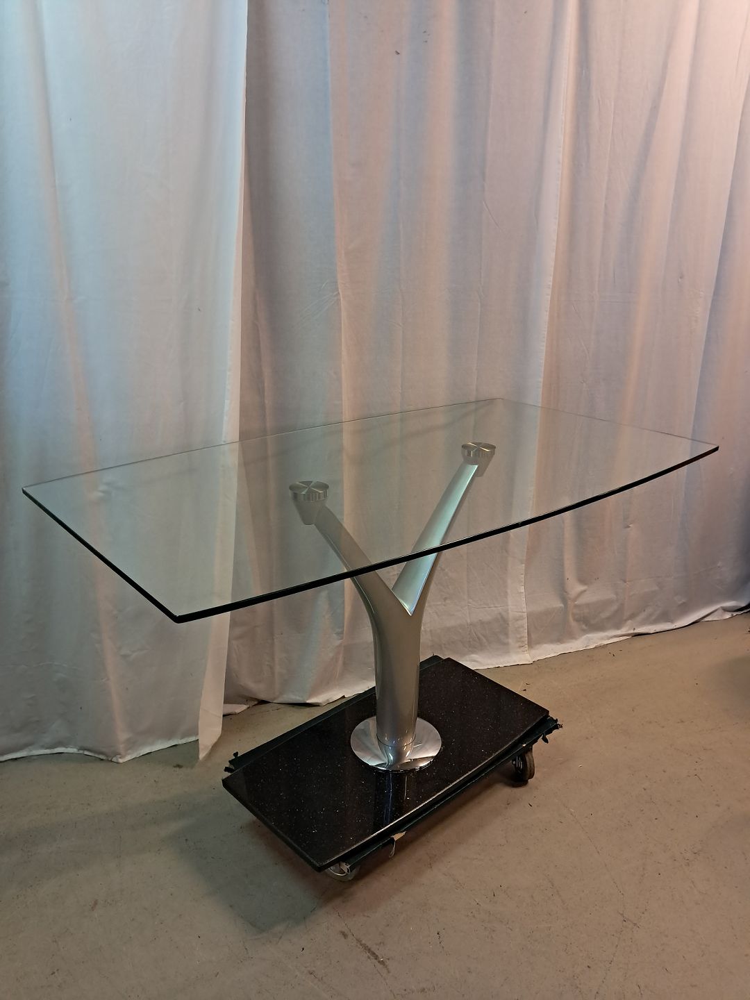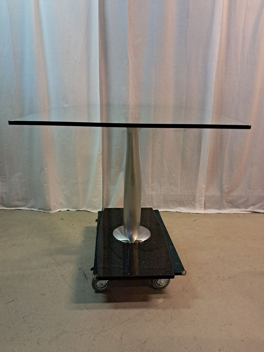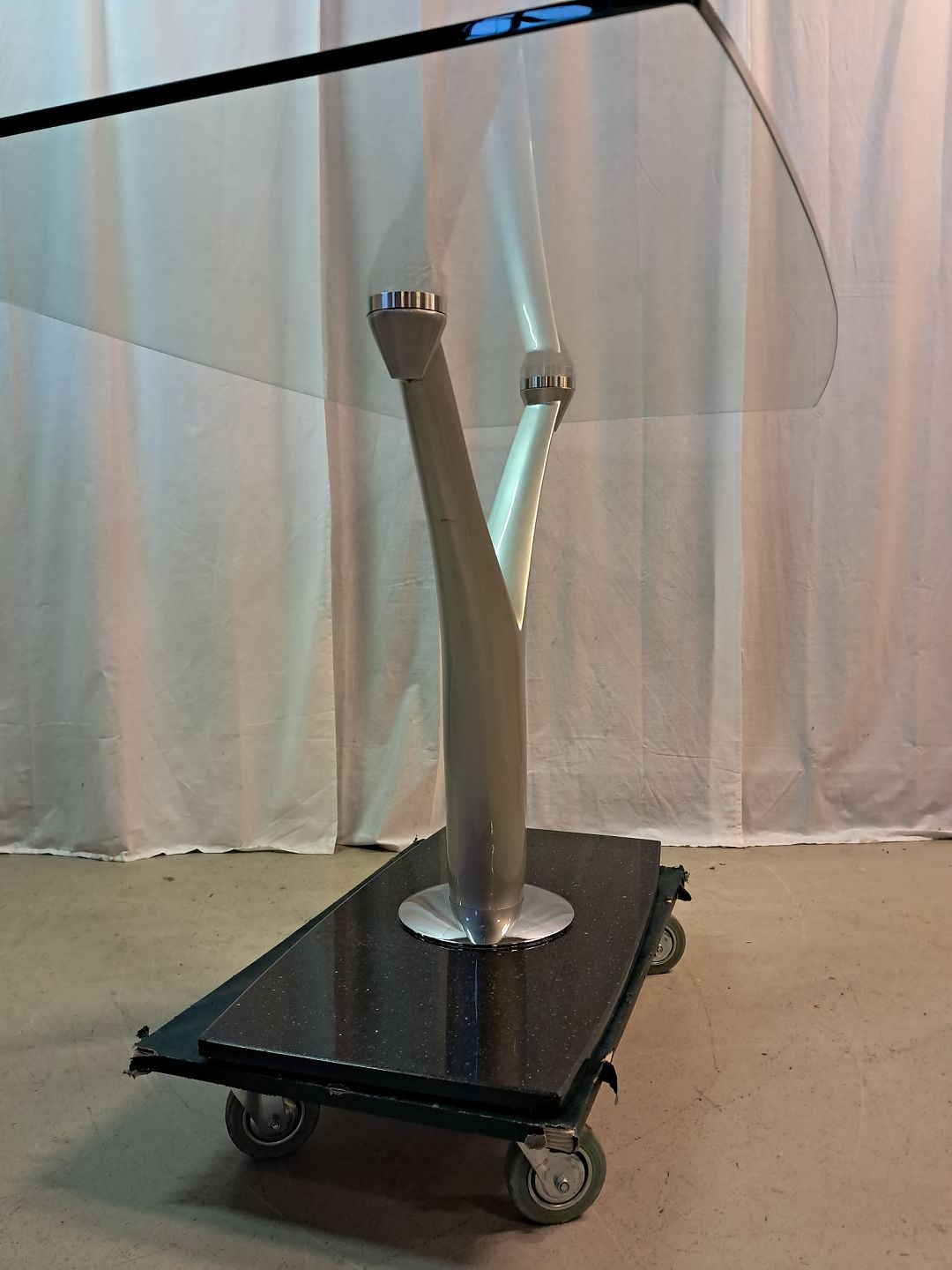 Glasbord i metal med stenfod, fra 2000erne.
