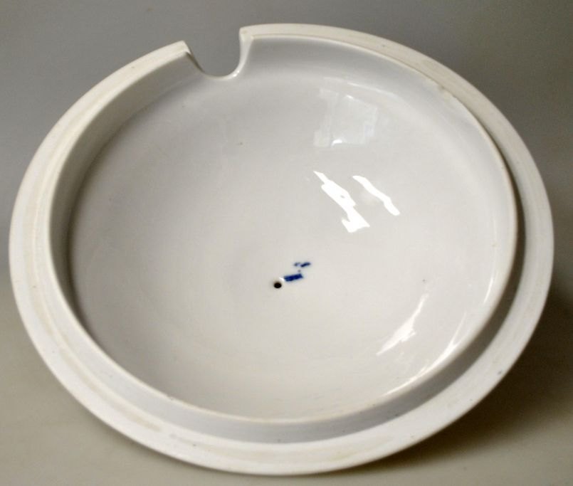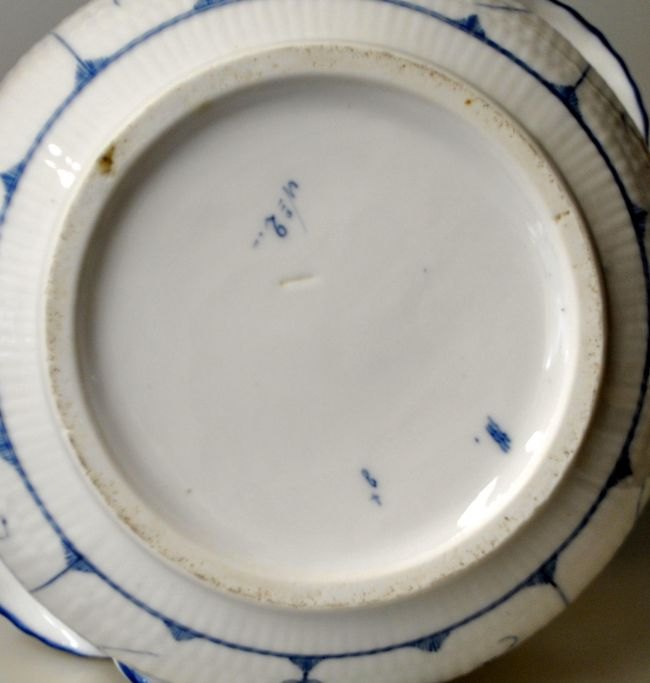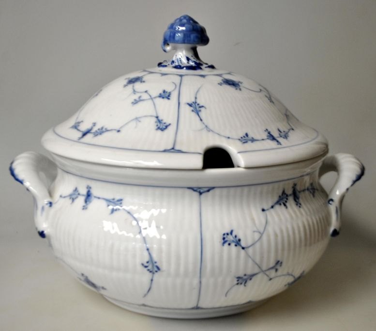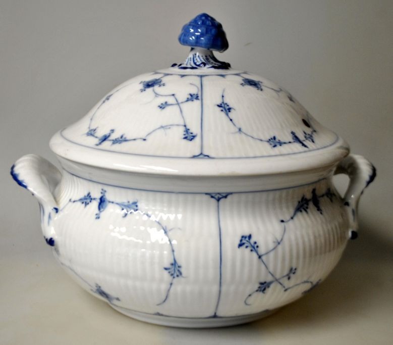 Royal Copenhagen rund terrin, no. 2, musselmalet, riflet,1850 - 1875, København, Danmark.
