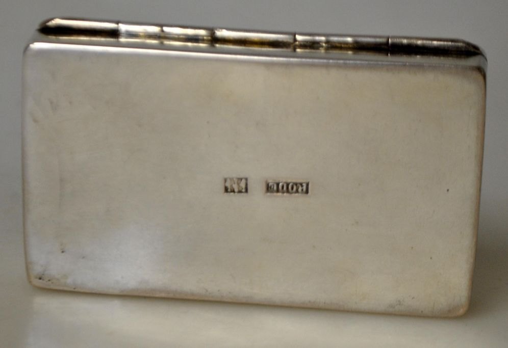 Carl Christopher Rode (1826 - 1902) Åbenrå, Danmark: Lugtedåse i sølv. Stemplet med mestermærke og byvåben. Indvendig lueforgyldt og gitter med agern og egeløv. 7,5 x 4,5 x 1,5 cm. Vægt: 68 gram.
