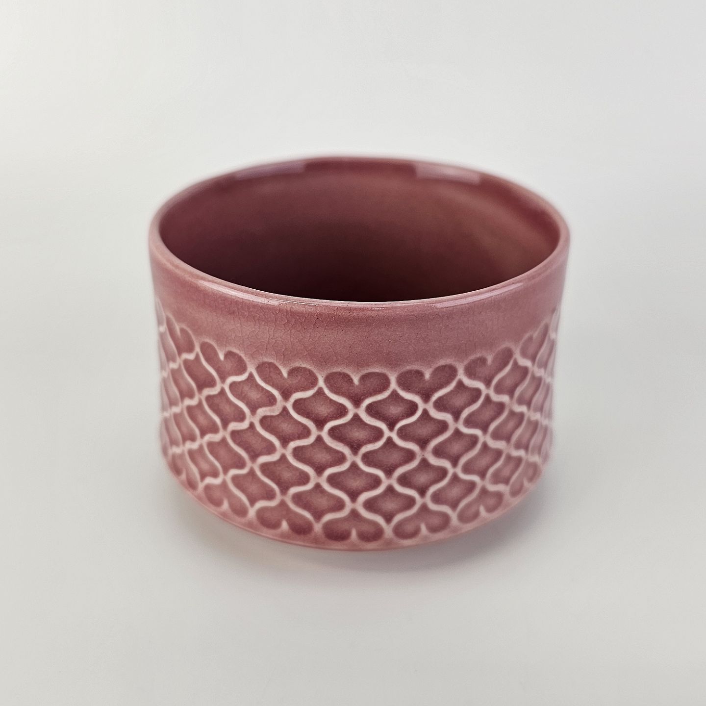 Lilla Cordial er glaseret og med et mønster af bølger