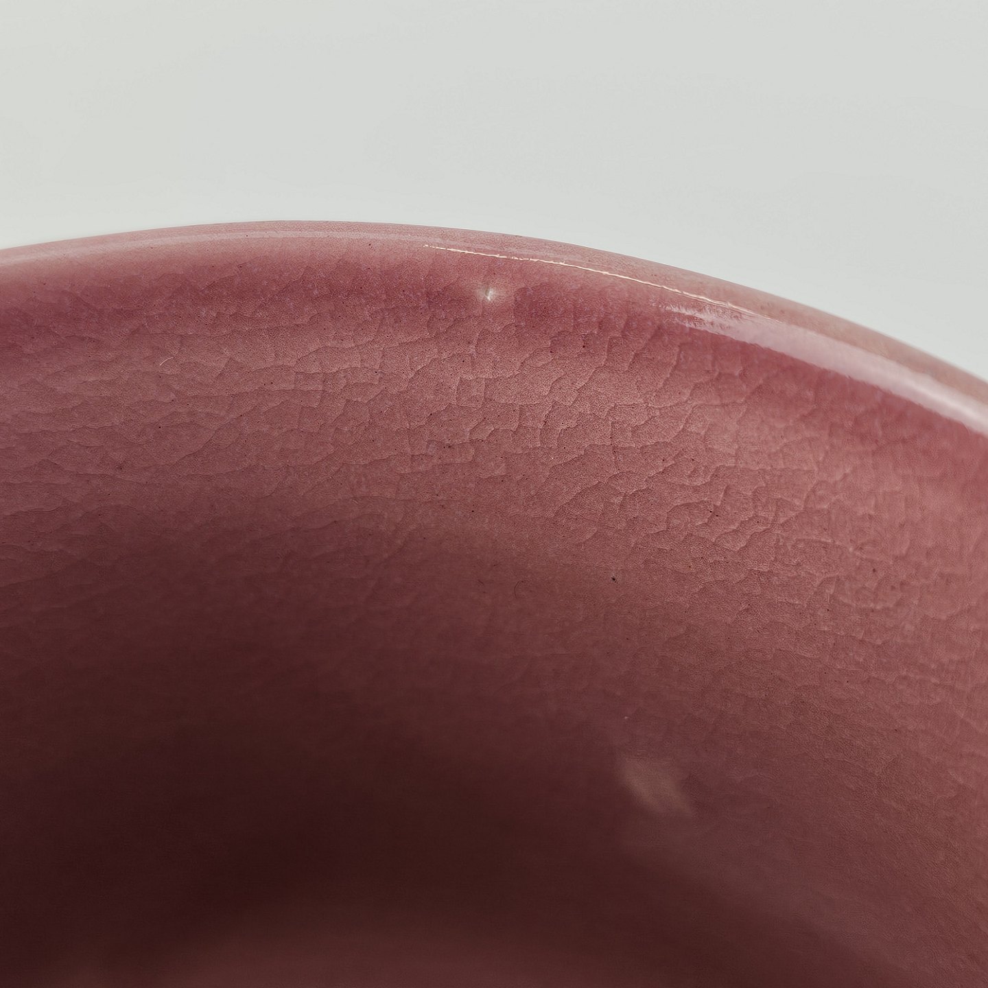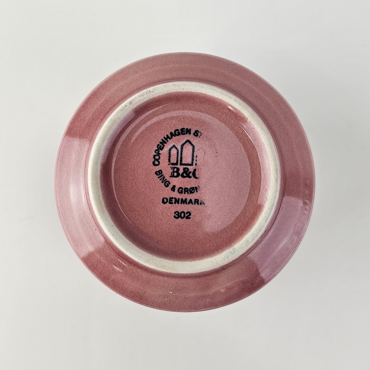 Fremstår med en nist på kanten og en farveforskel på indersiden, samt delvist beskadiget stempel under bunden