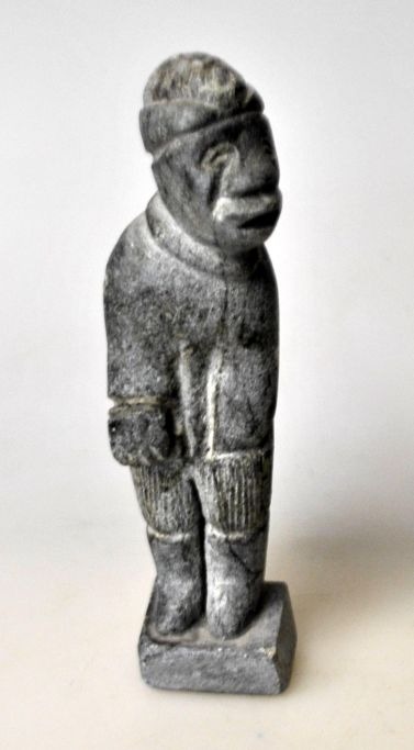 Grønlandsk fedtstenfigur, 1985. En stående mand. Signeret ML 85. H.: 11,3 cm.