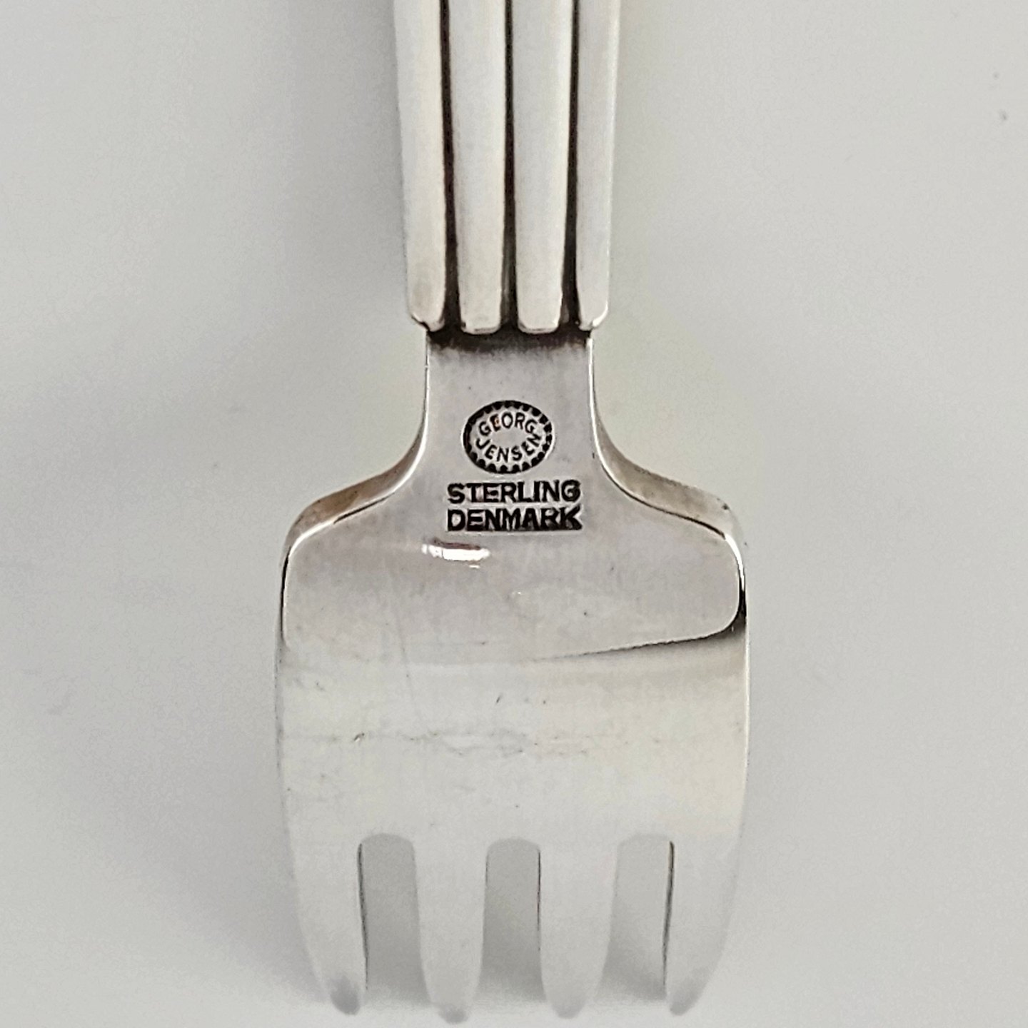 Barnegaffel i sterling sølv skaft dekoreret med striber